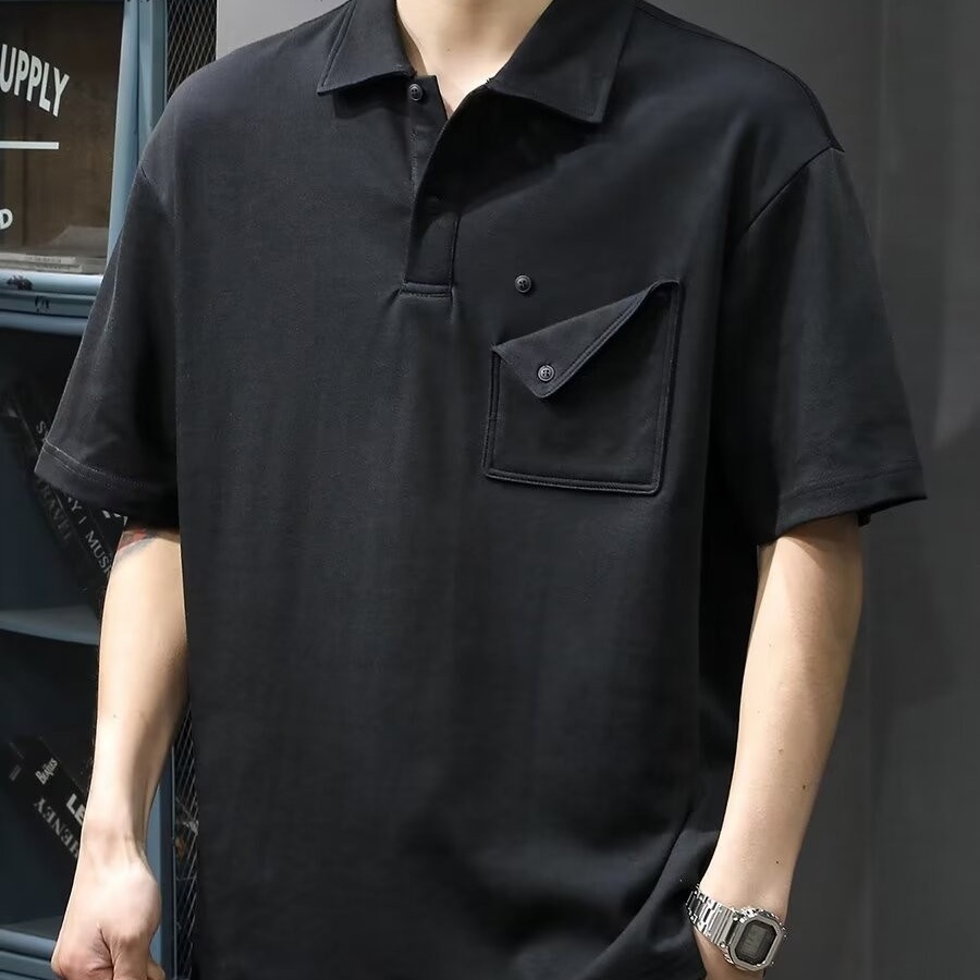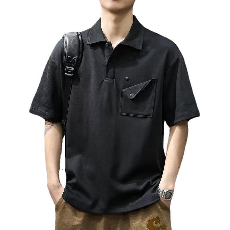夏季新款宽松短袖T恤男士POLO衫帅气潮流休闲加大码翻领上衣