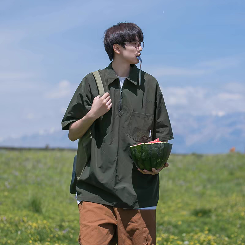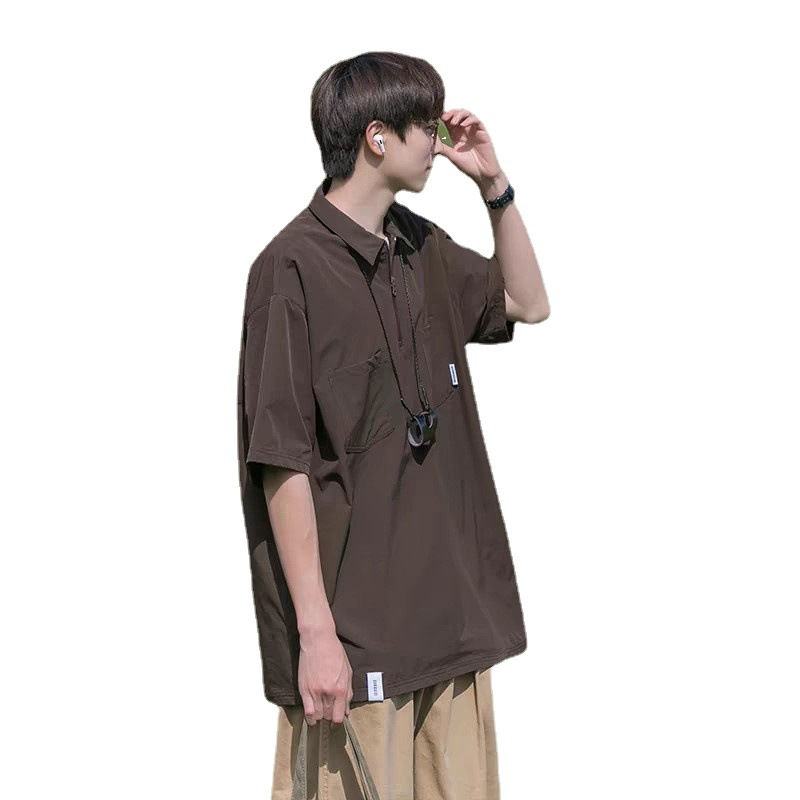 衬衫男短袖polo衫潮牌潮流上衣服重磅T恤五分半袖美式复古新款