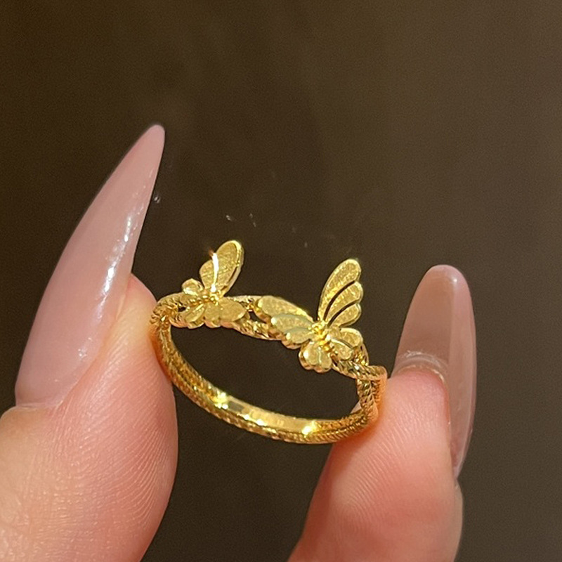 小红书爆款爆闪金色小蝴蝶戒指2025新款轻奢高级感古法金精致指环