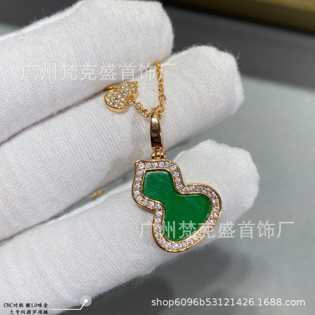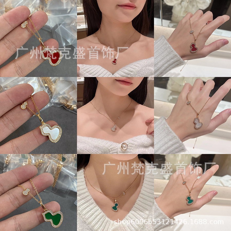精工高版本V金葫芦项链女厚镀18k玫瑰金麒麟Wulu新年红玉髓锁骨链