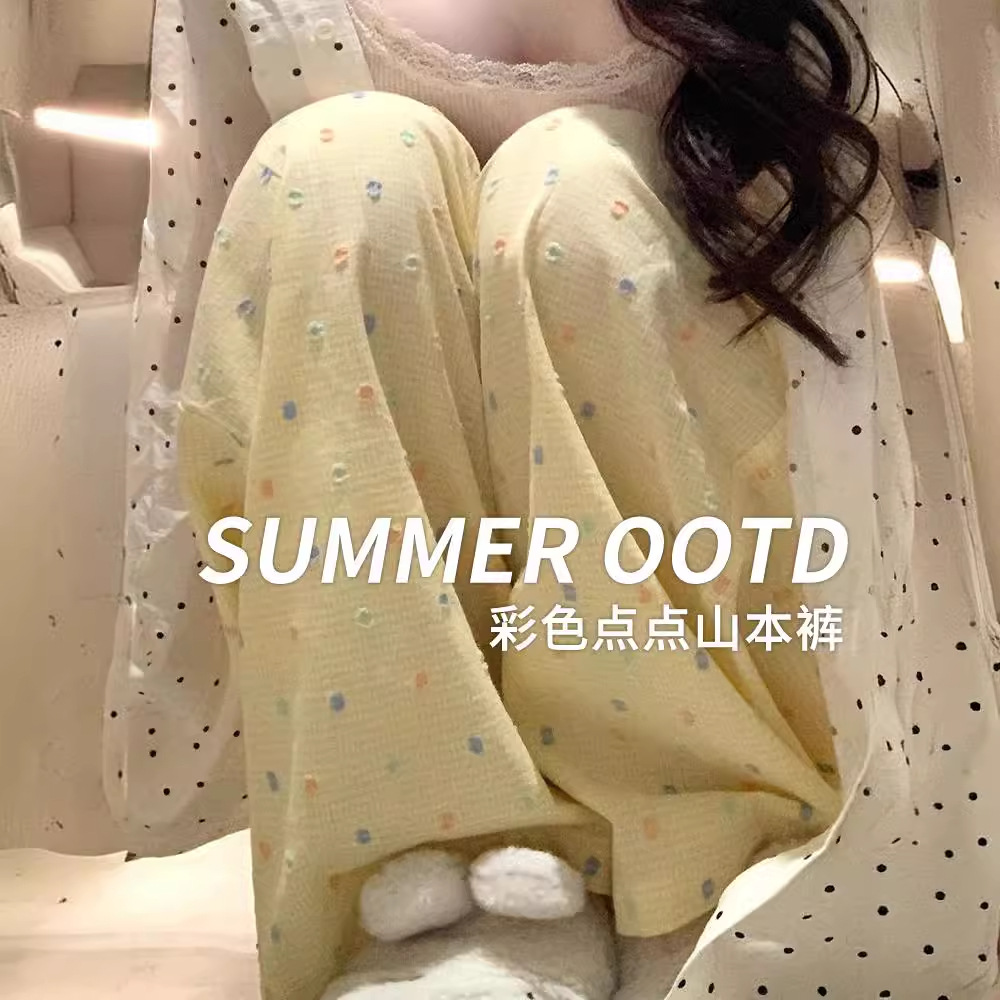 黄色波点阔腿裤女高腰垂感夏季薄款新款休闲小个子冰丝山本裤