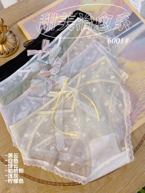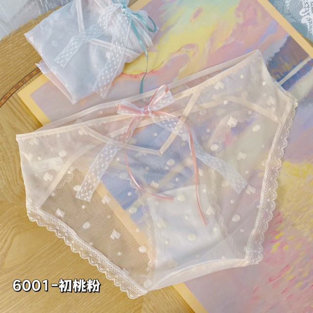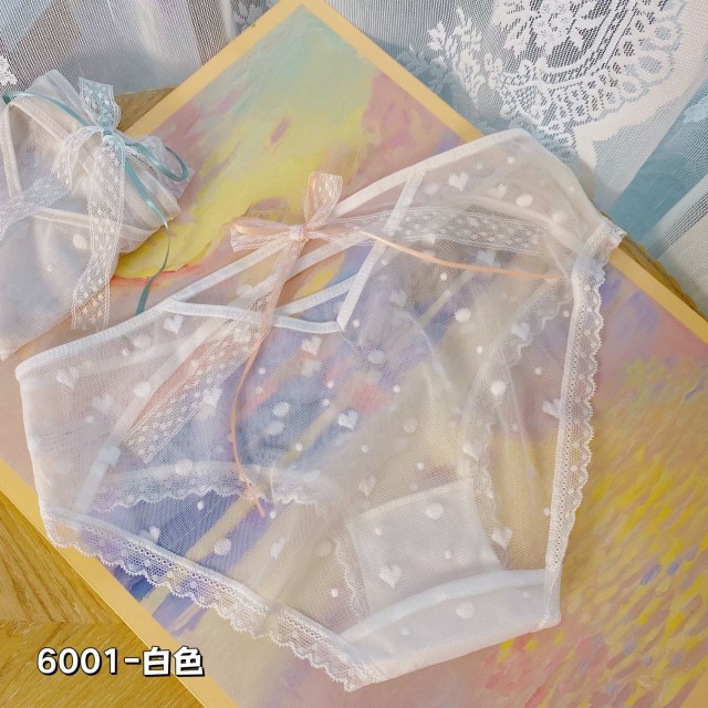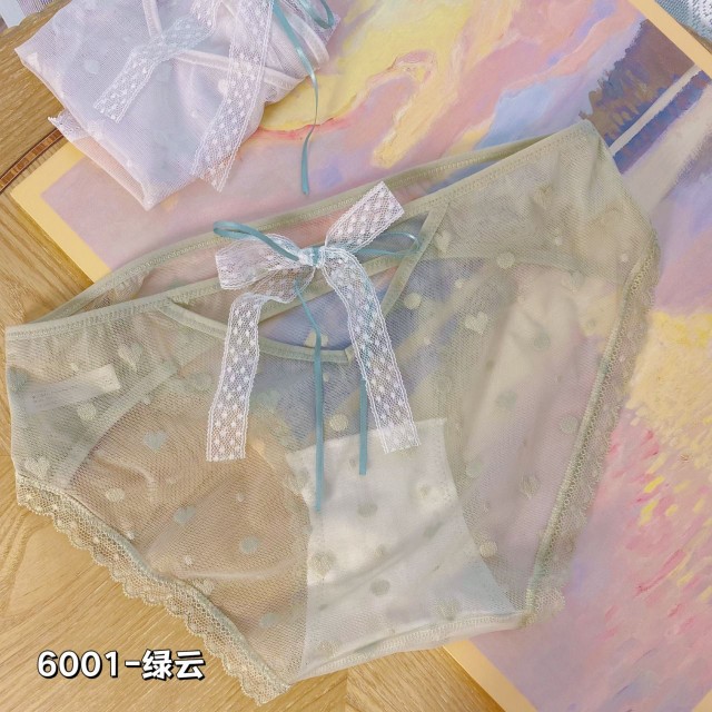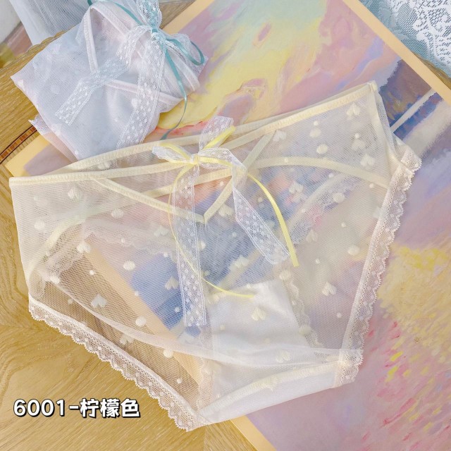 新款宫廷蕾丝性感网纱透明冰丝镂空蝴蝶结薄透气三角裤头