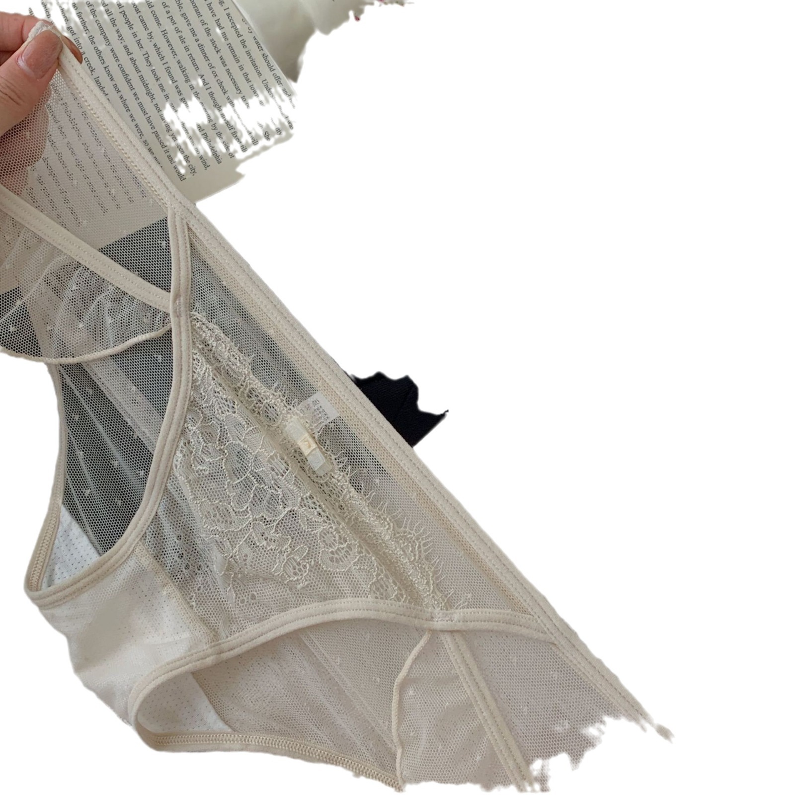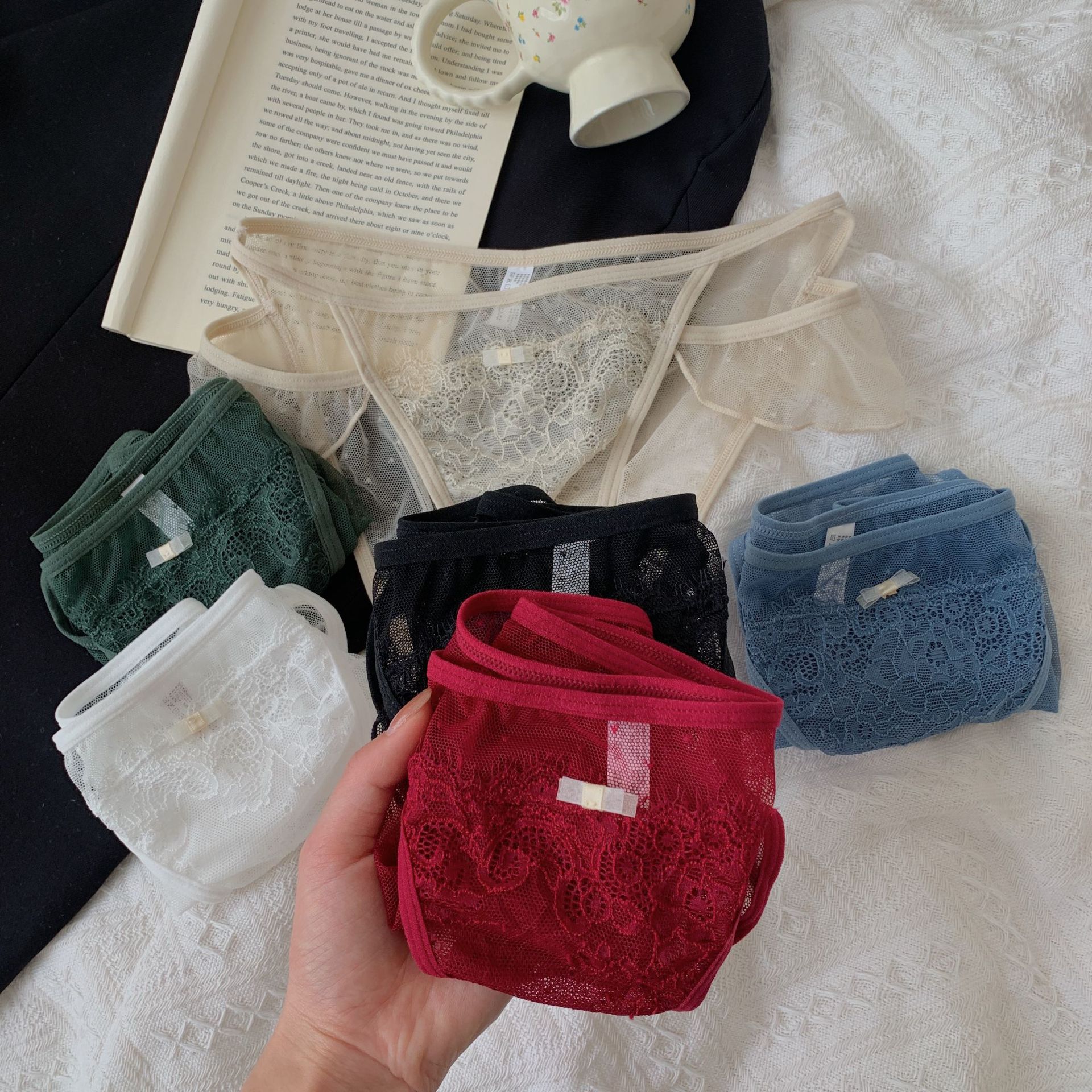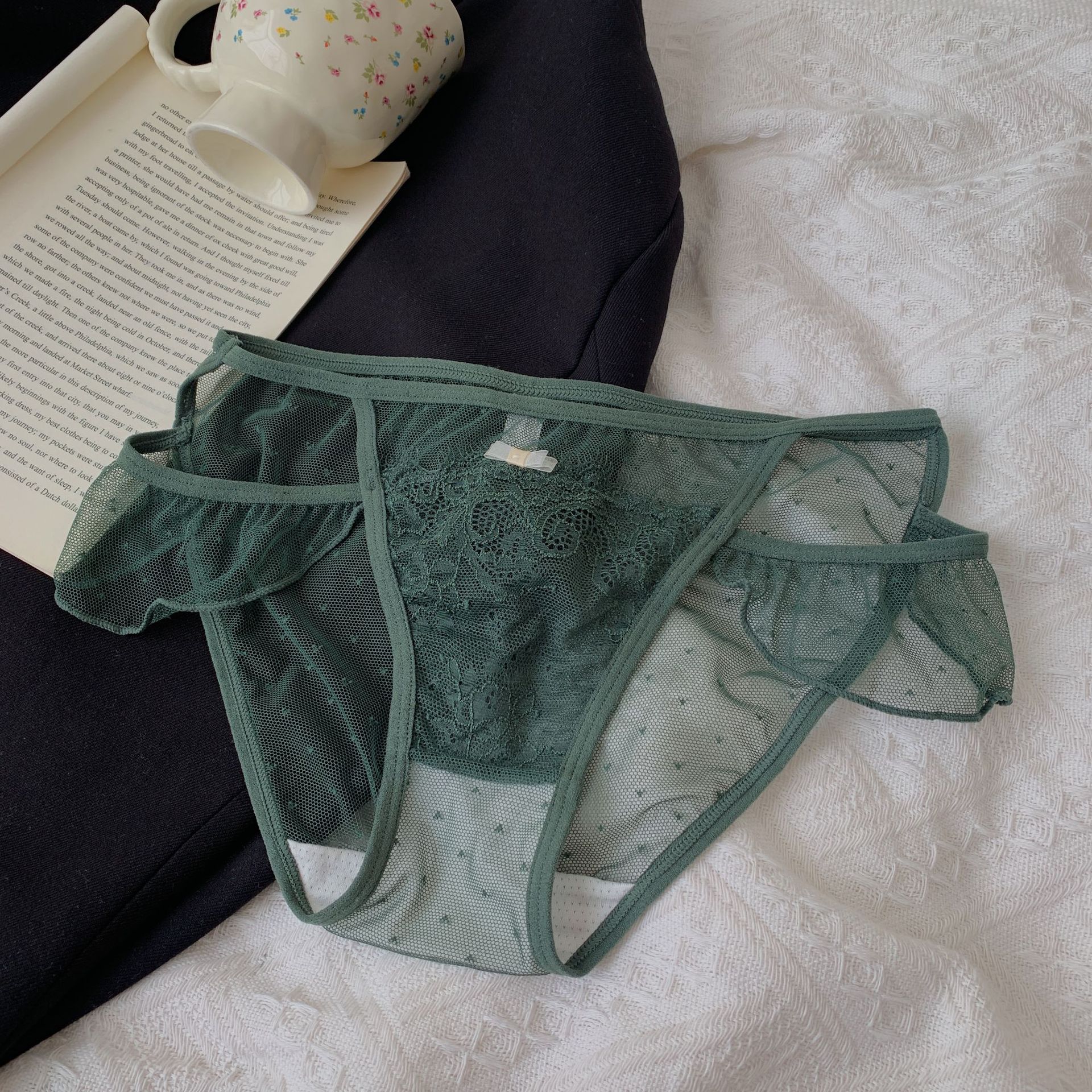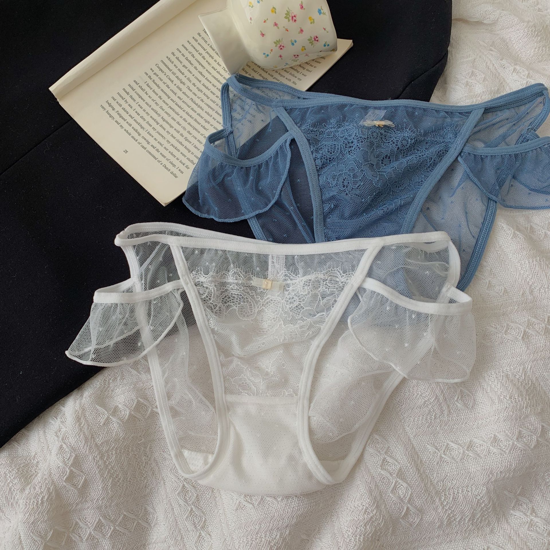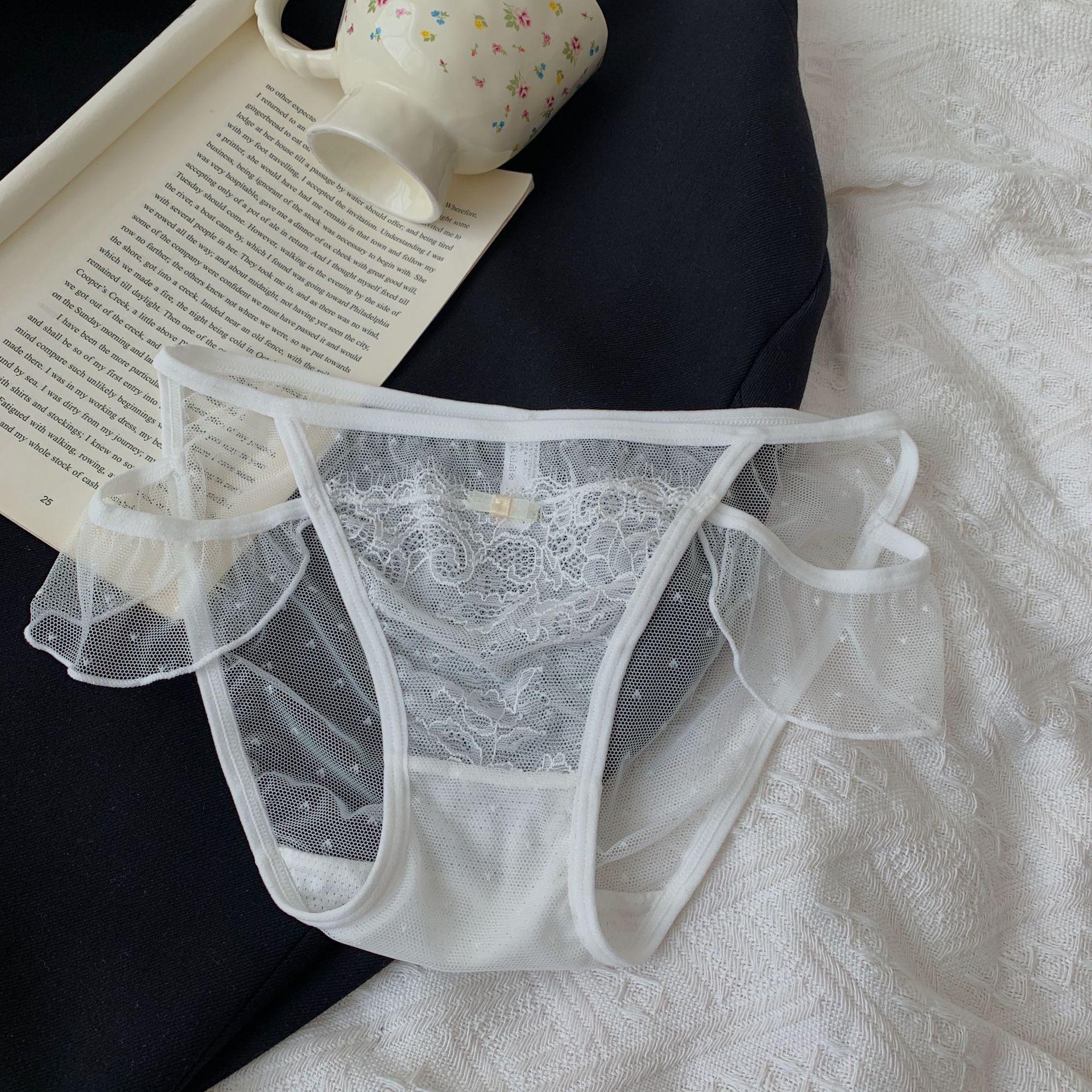 法式蕾丝纯欲中腰高弹网纱蝴蝶结透明镂空点点简约包臀女士三角裤