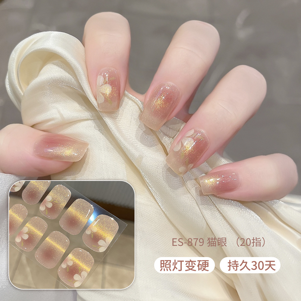 【ES879猫眼】20指半固化凝胶uv半烤美甲贴指甲贴片照灯变硬