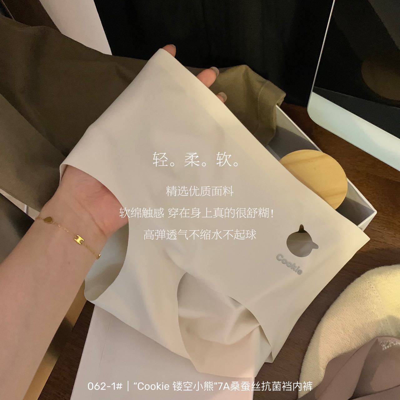 7A级桑蚕丝裤~镂空小熊抗菌无痕裆秋冬新款少女学生三角内裤女