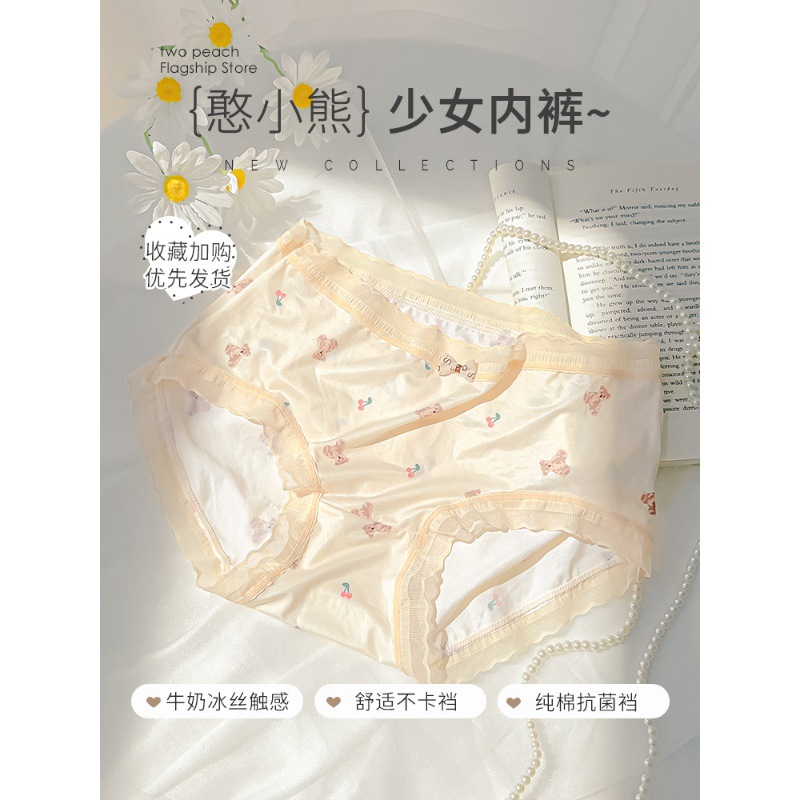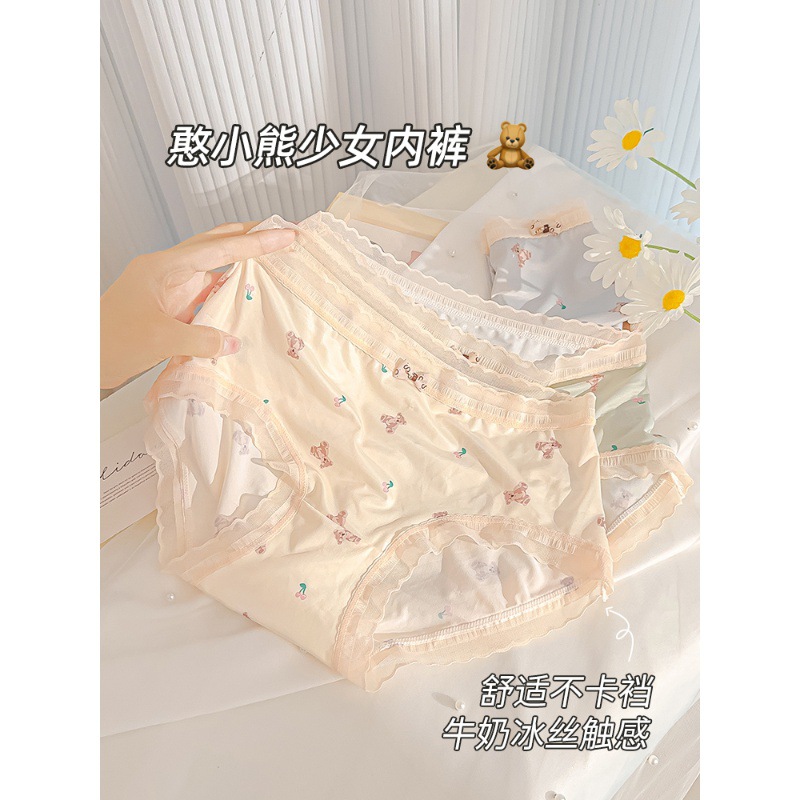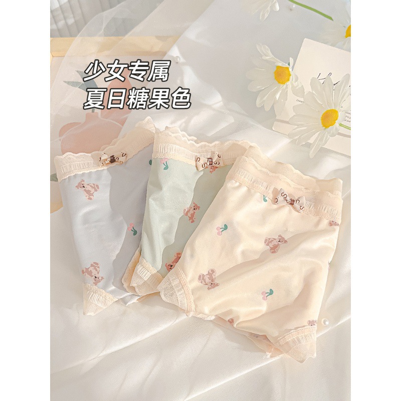 「冰丝小熊」内裤女夏季薄款少女可爱奶呼丝滑绸缎裆短裤