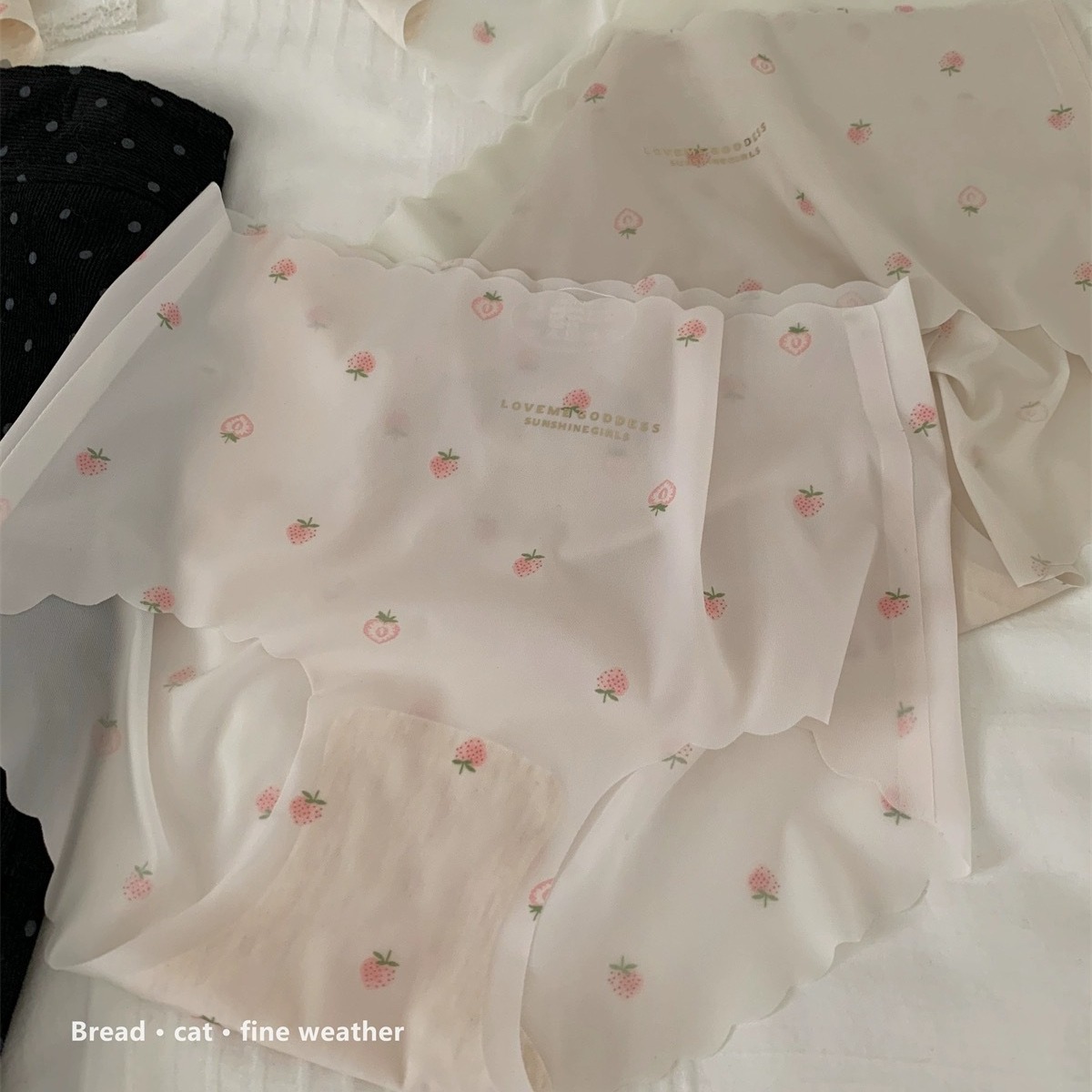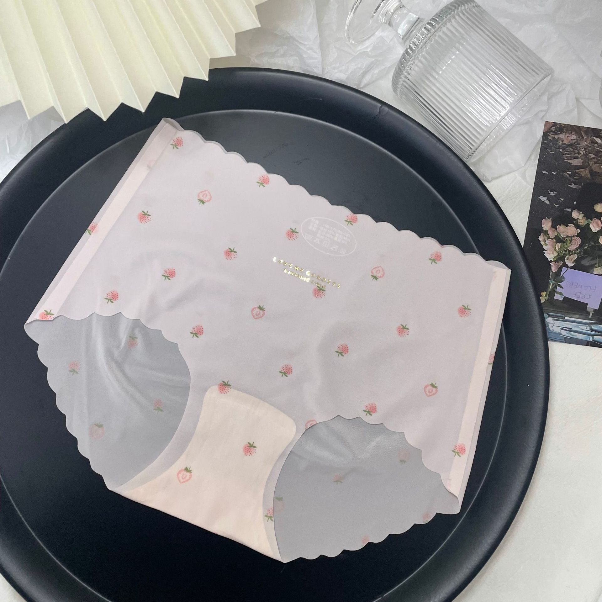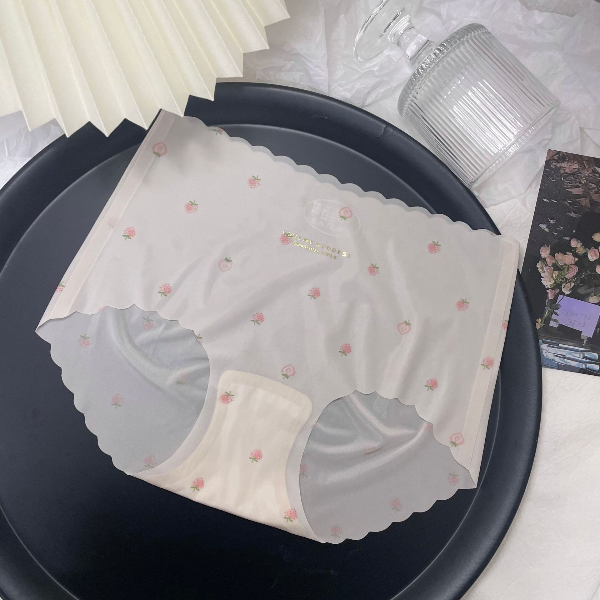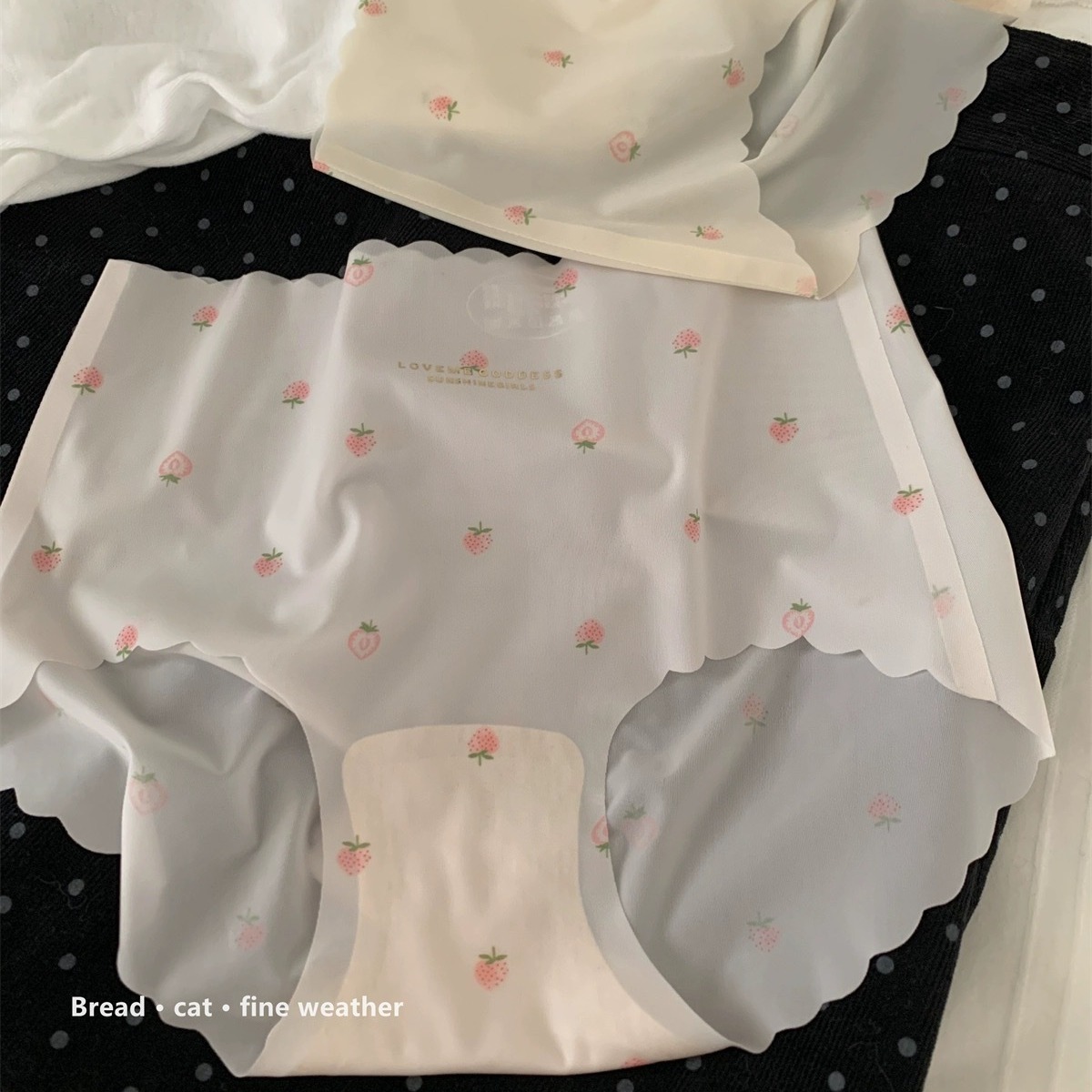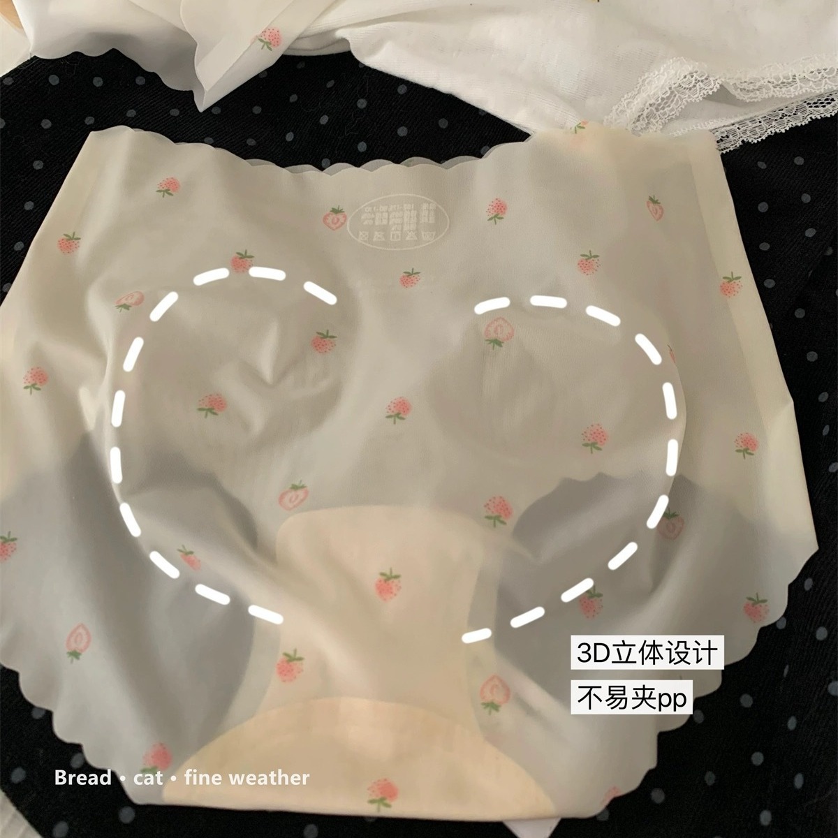 夏季新爆款无痕冰丝内裤女甜美草莓超薄随意裁透气中腰三角女内裤