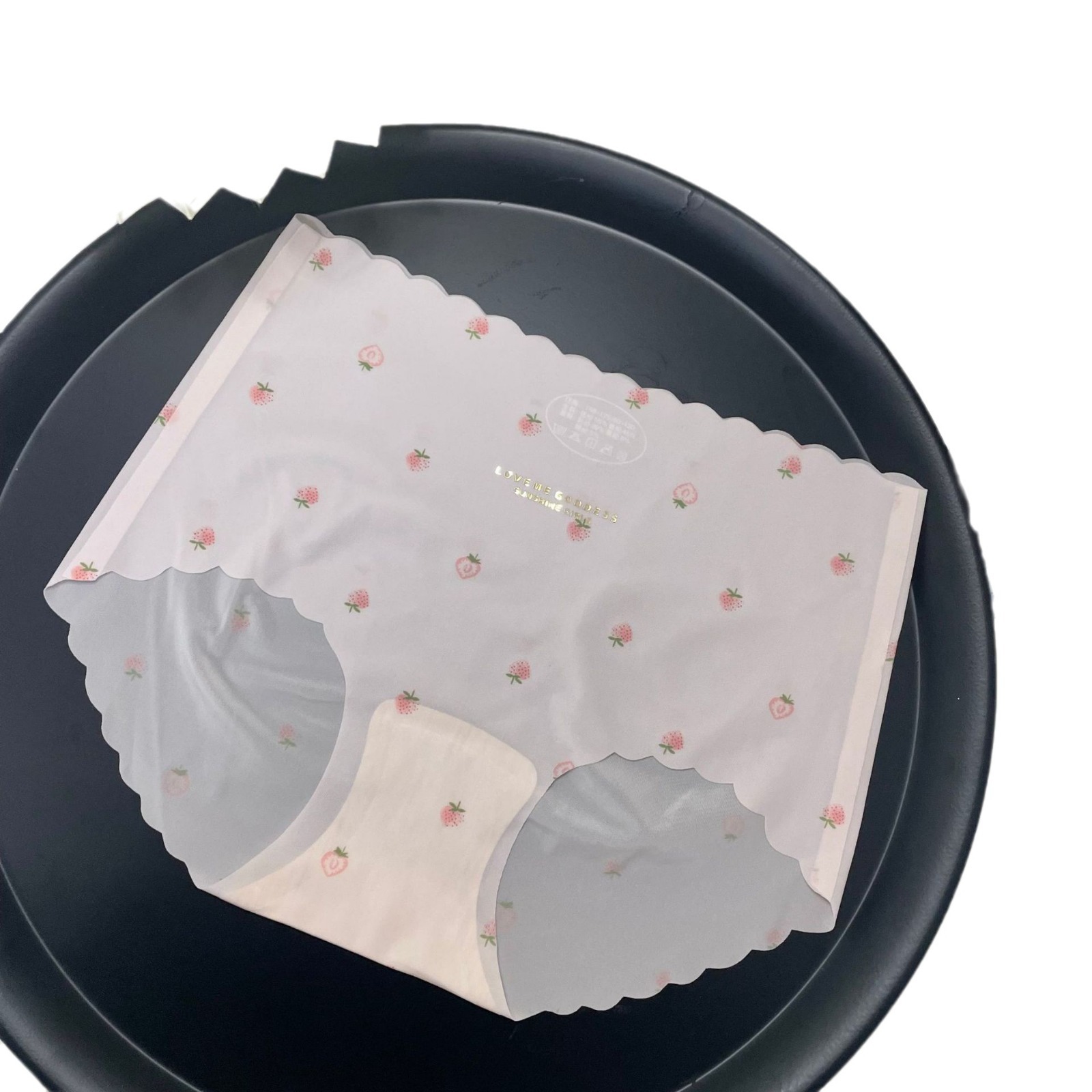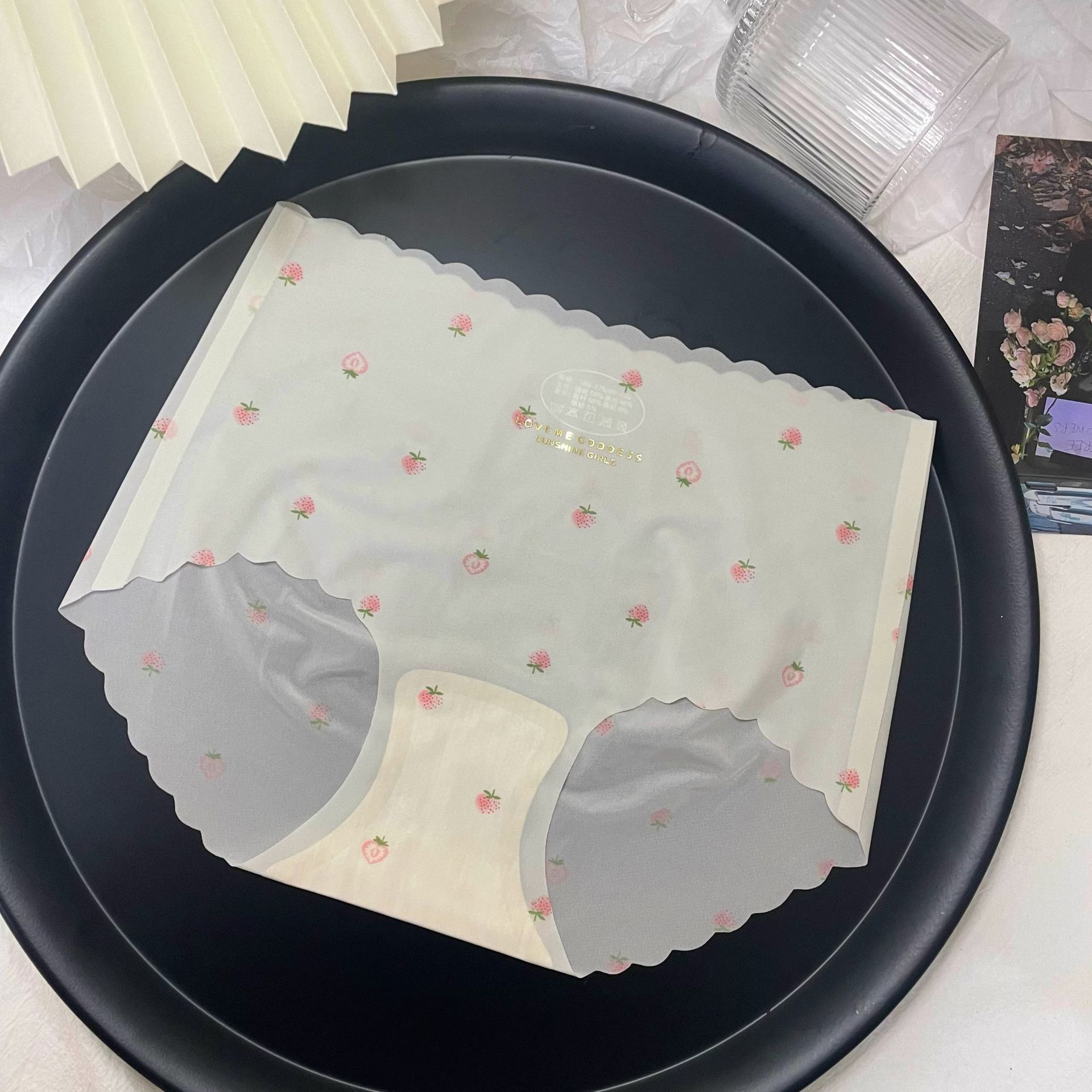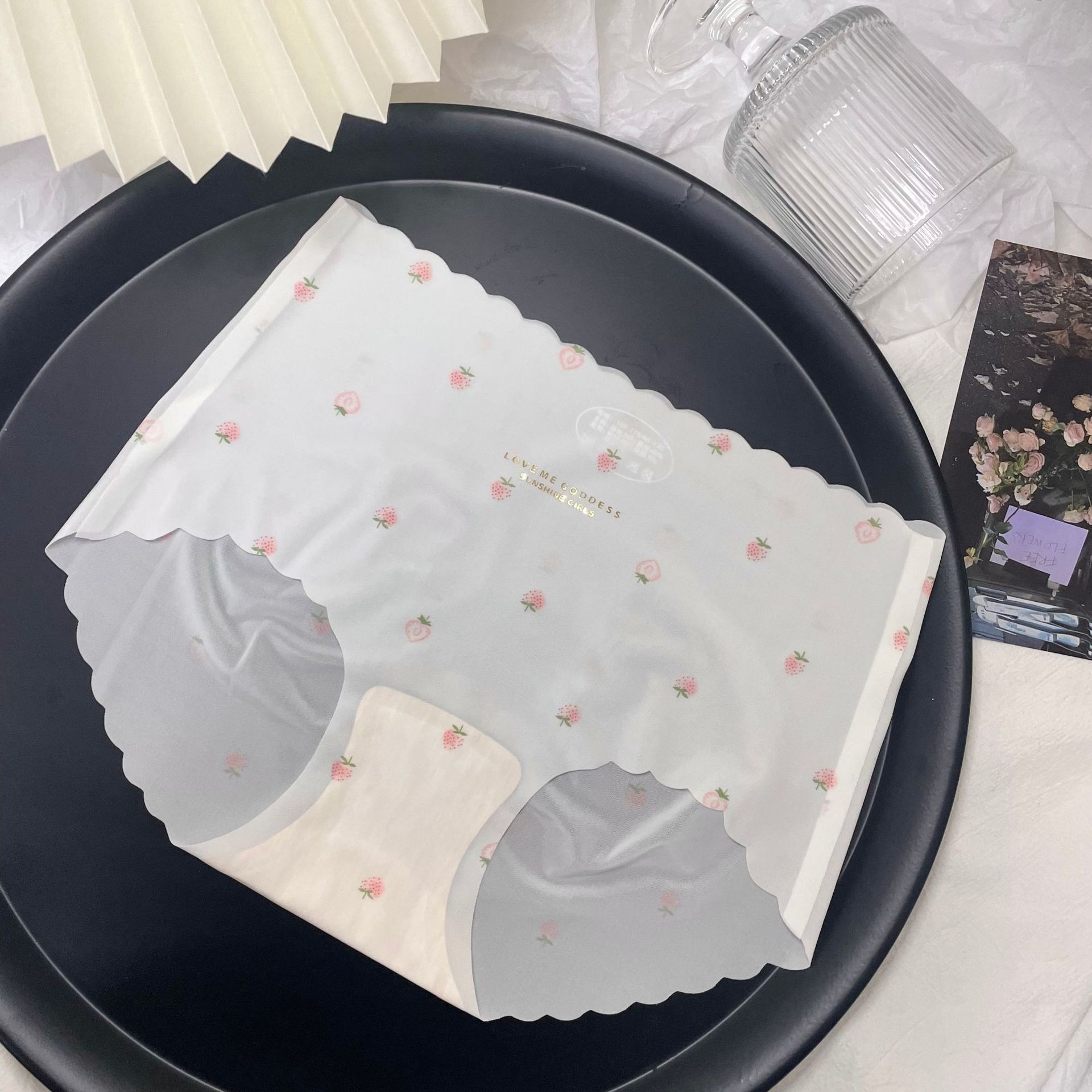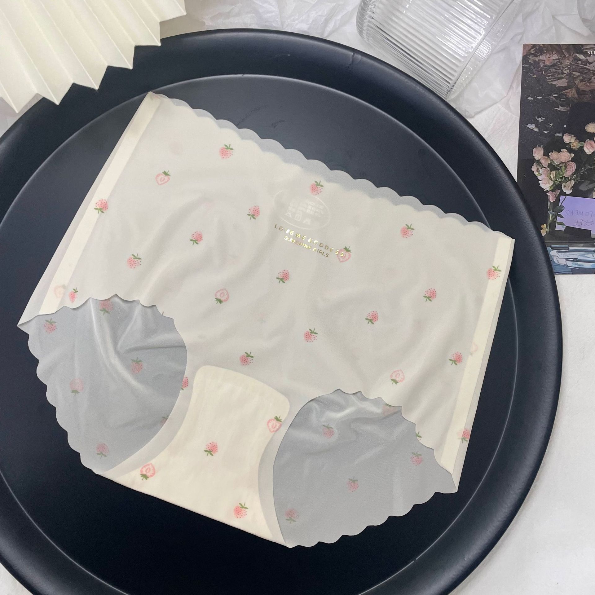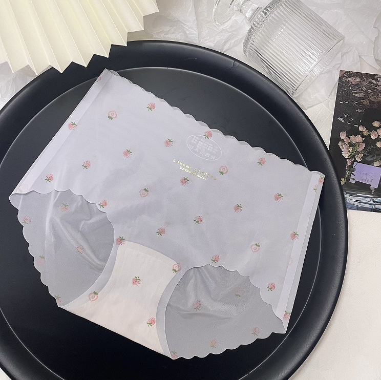 夏季新爆款无痕冰丝内裤女甜美草莓超薄随意裁透气中腰三角女内裤