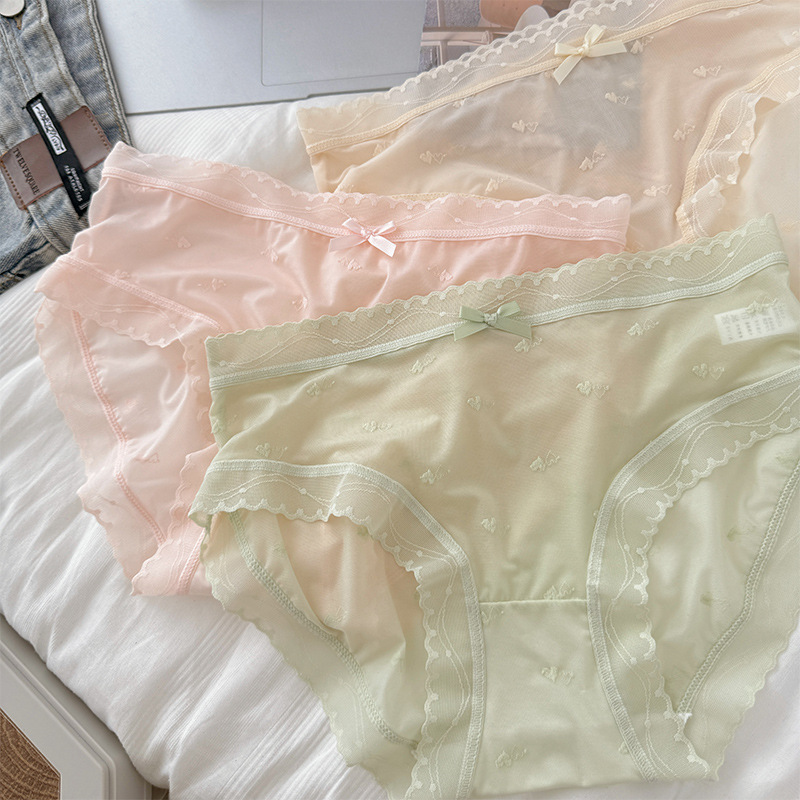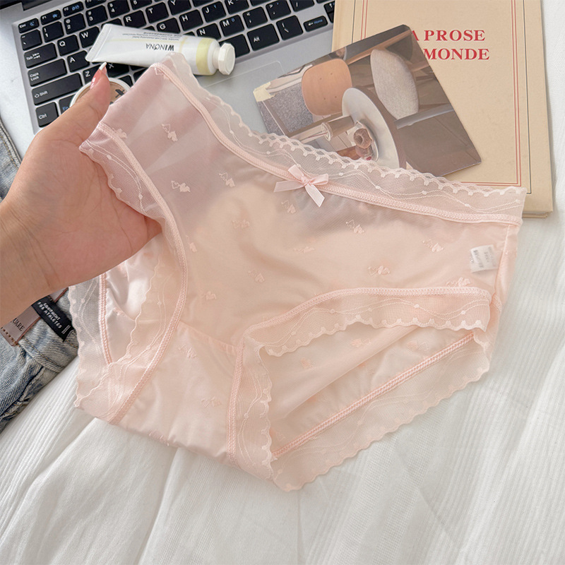 速干冰丝无痕女内裤性感半透小爱心甜美少女裆学生三角裤夏季薄款