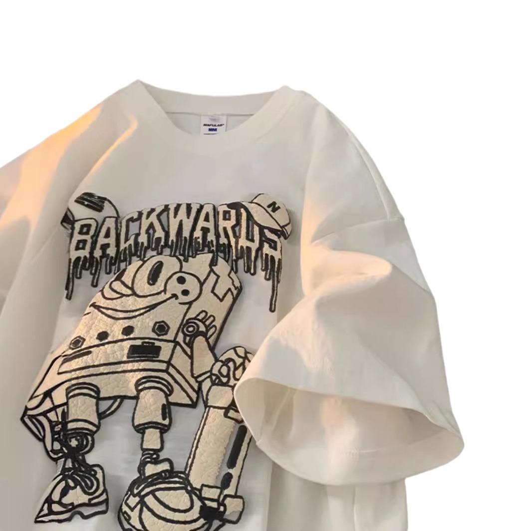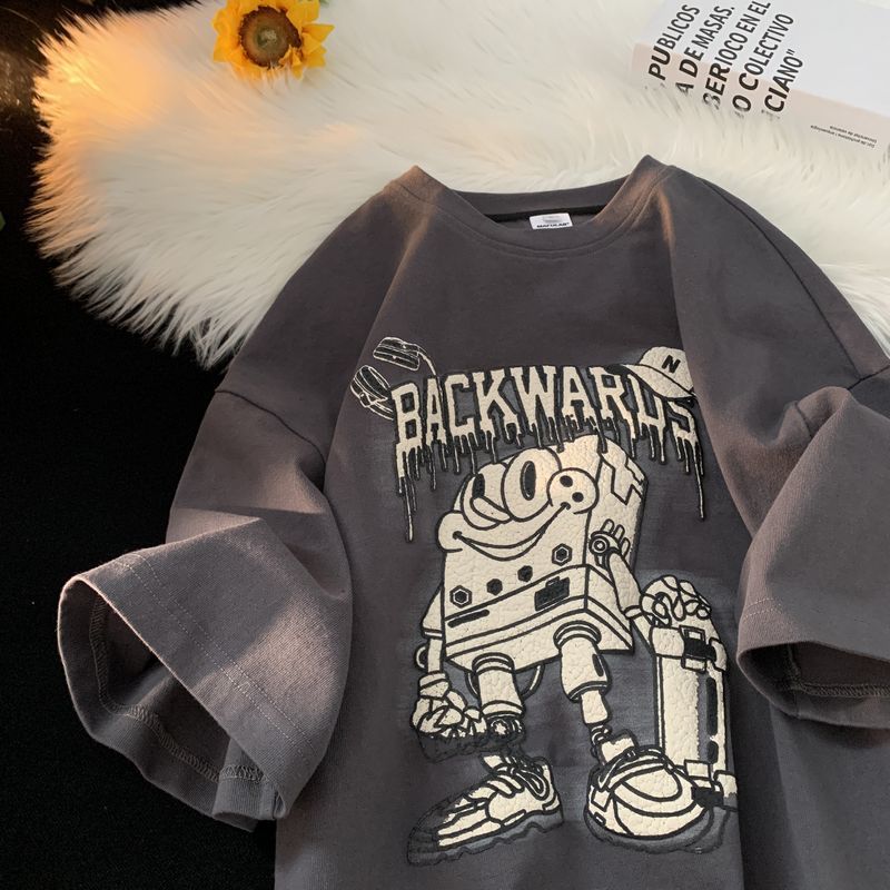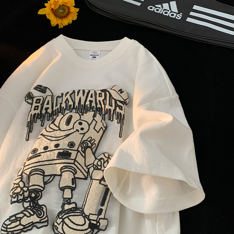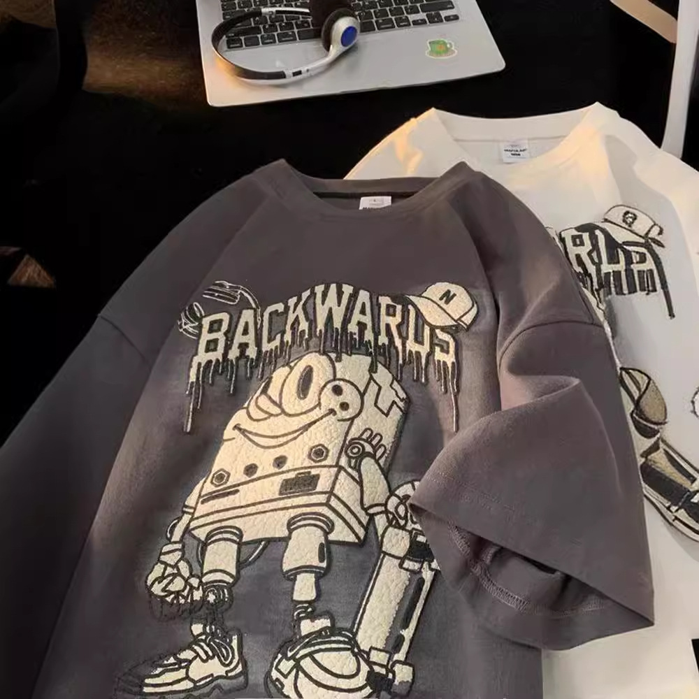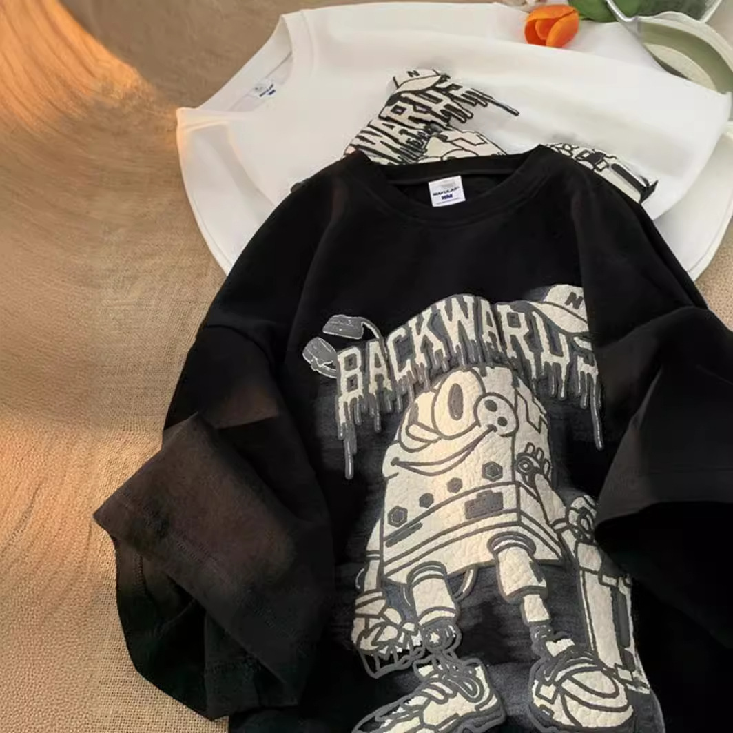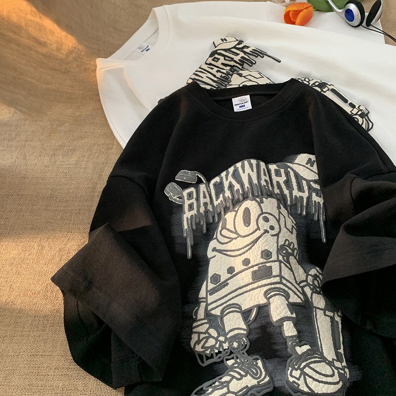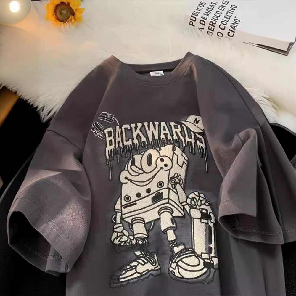 卡通印花高中生短袖t恤男夏季美式复古潮牌重磅宽松圆领半袖体恤
