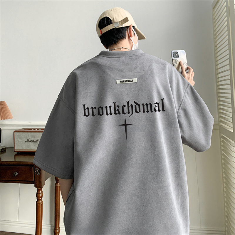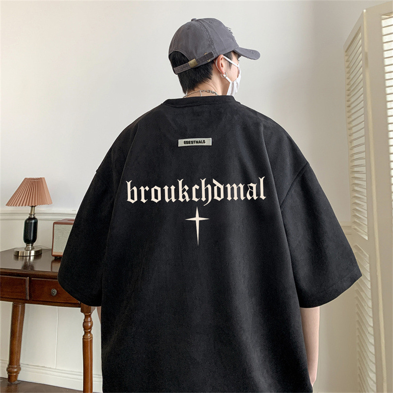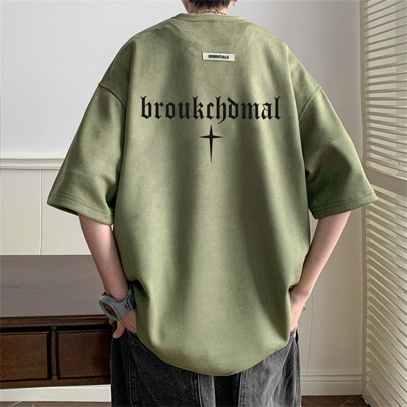 慵懒标准T恤青春流行五分袖时尚潮牌圆领男潮流简约原宿新款日系