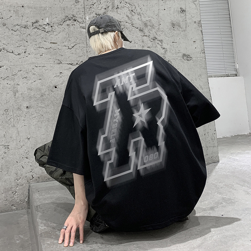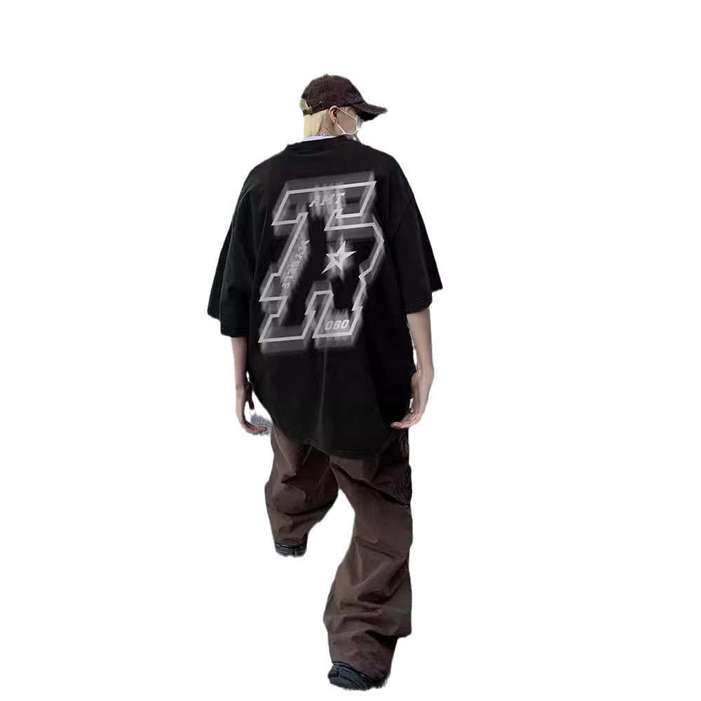 美式高街圆领短袖t恤男夏季潮流休闲百搭痞帅炸街嘻哈印花打底
