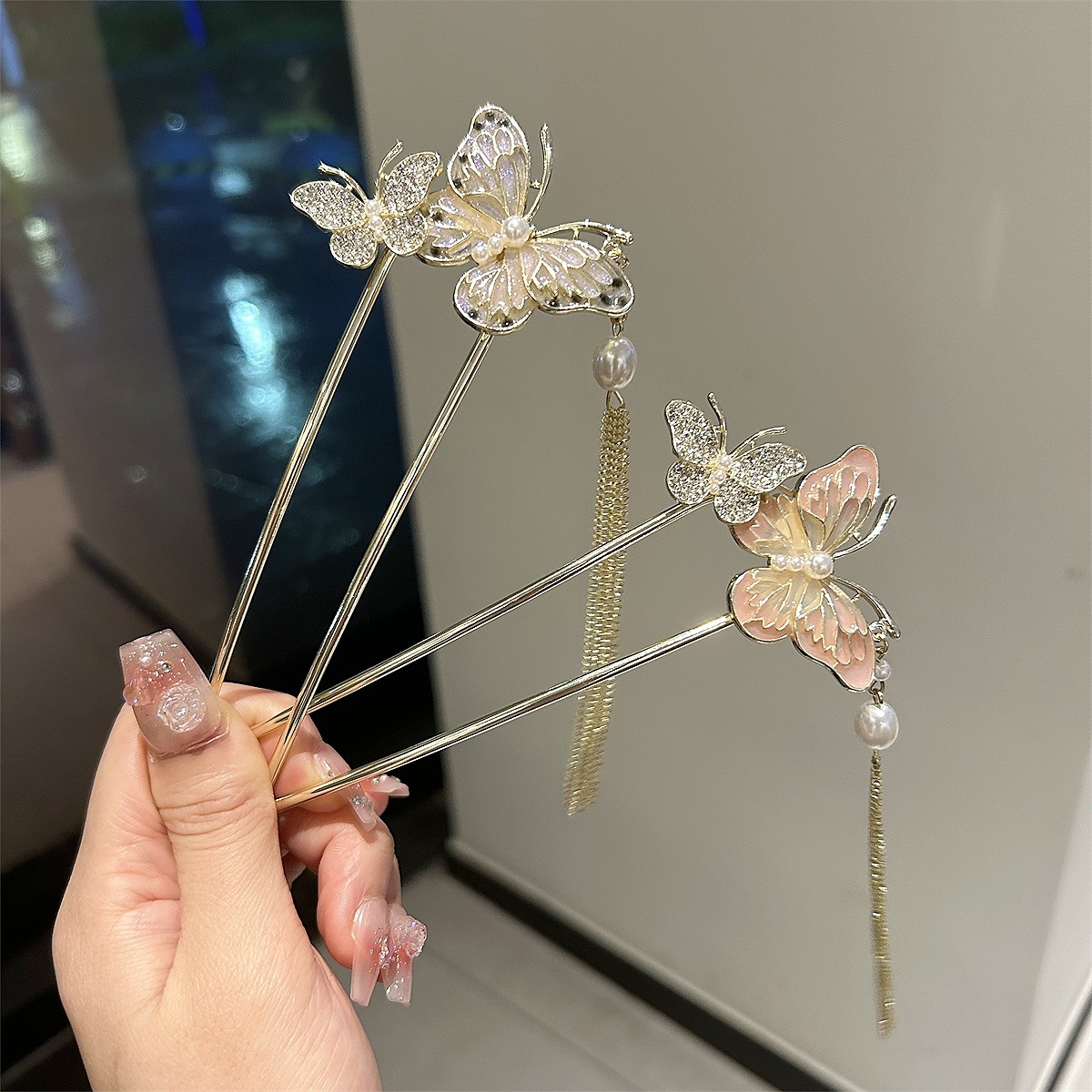 蝴蝶月光古风发簪女夏天高级感簪子简约现代丸子头盘发汉服发饰