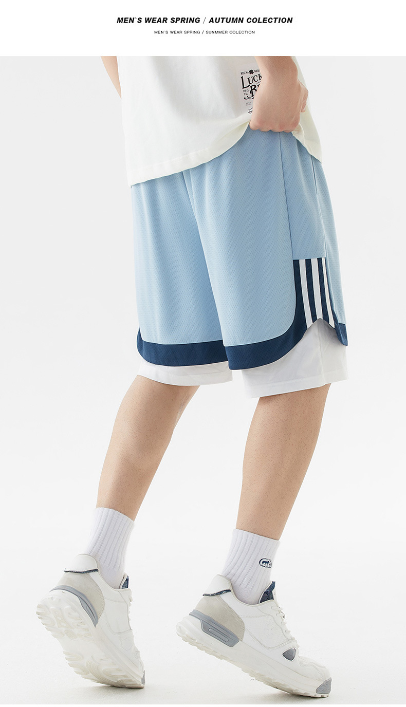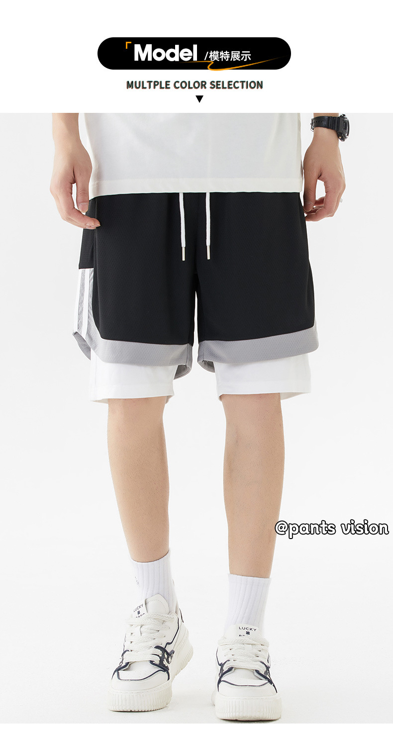 优质假两件美式篮球短裤男夏季运动冰丝速干训练健身跑步五分裤子