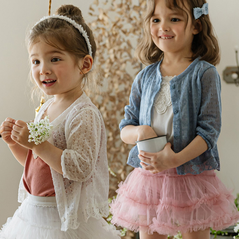 夏款草莓珊韩国女童女孩儿童花边3色甜美镂空空调衫防晒衫