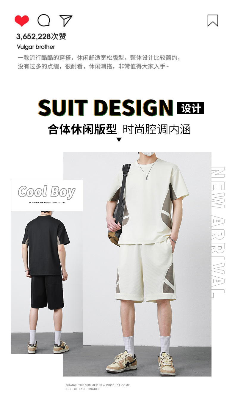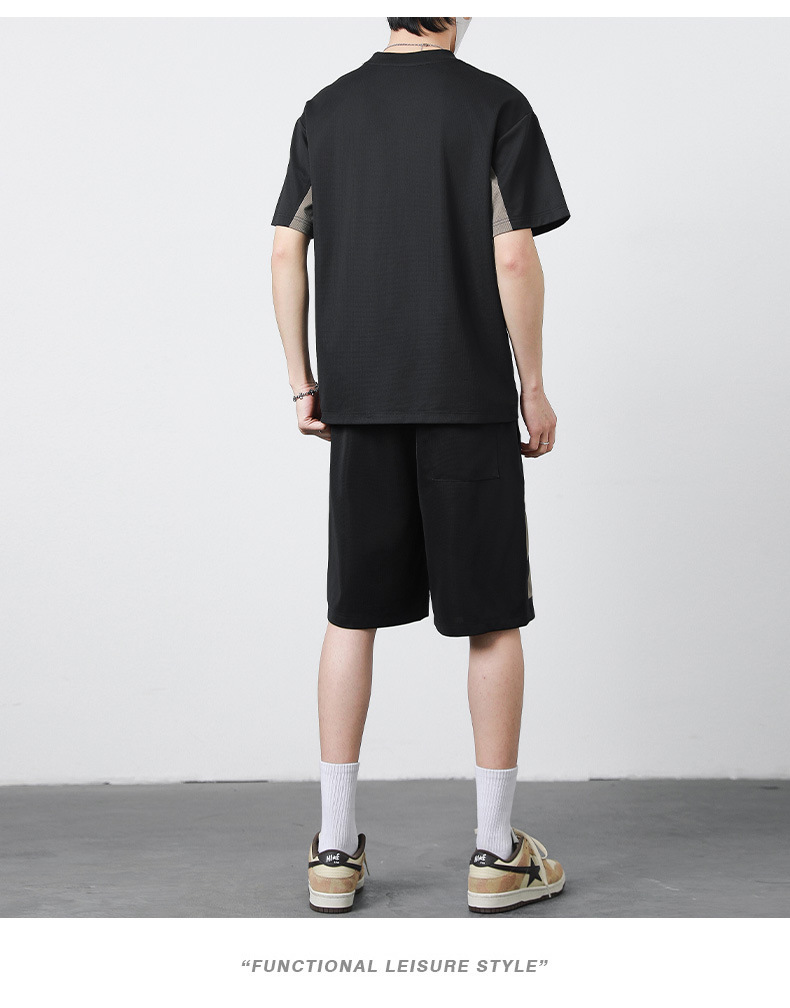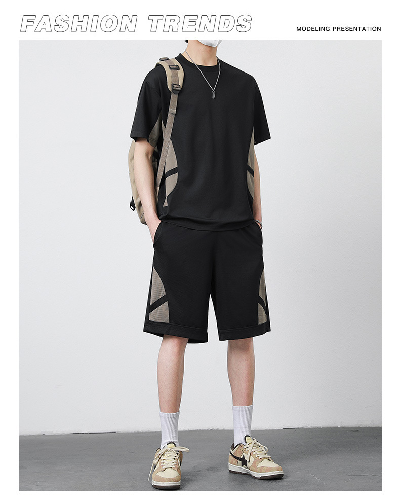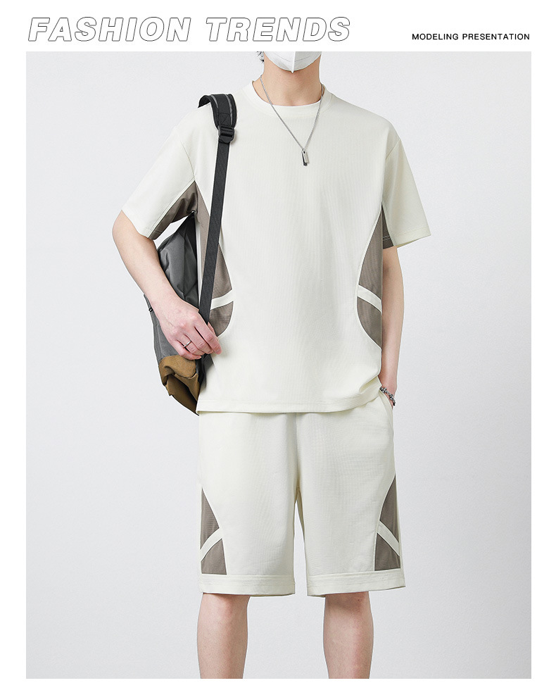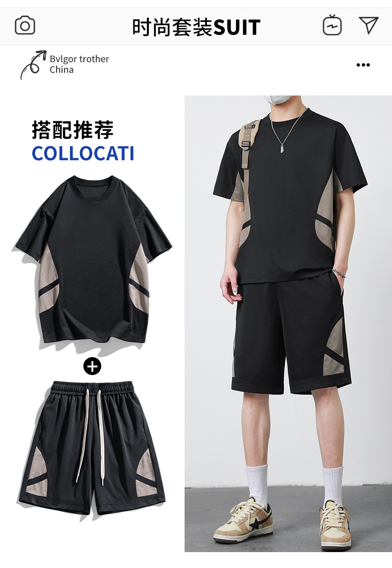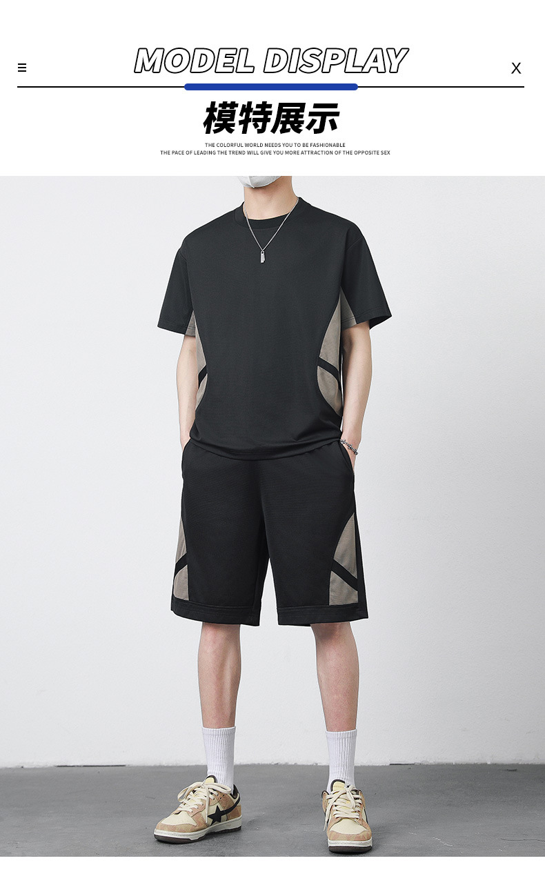 优质运动套装男士短袖T恤夏季修身休闲五分裤青少年简约套装