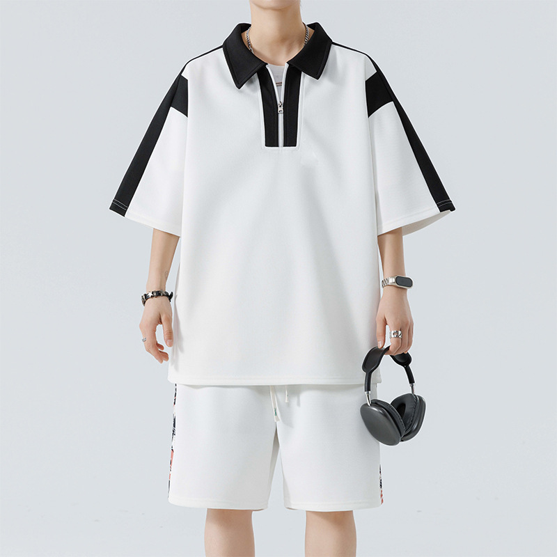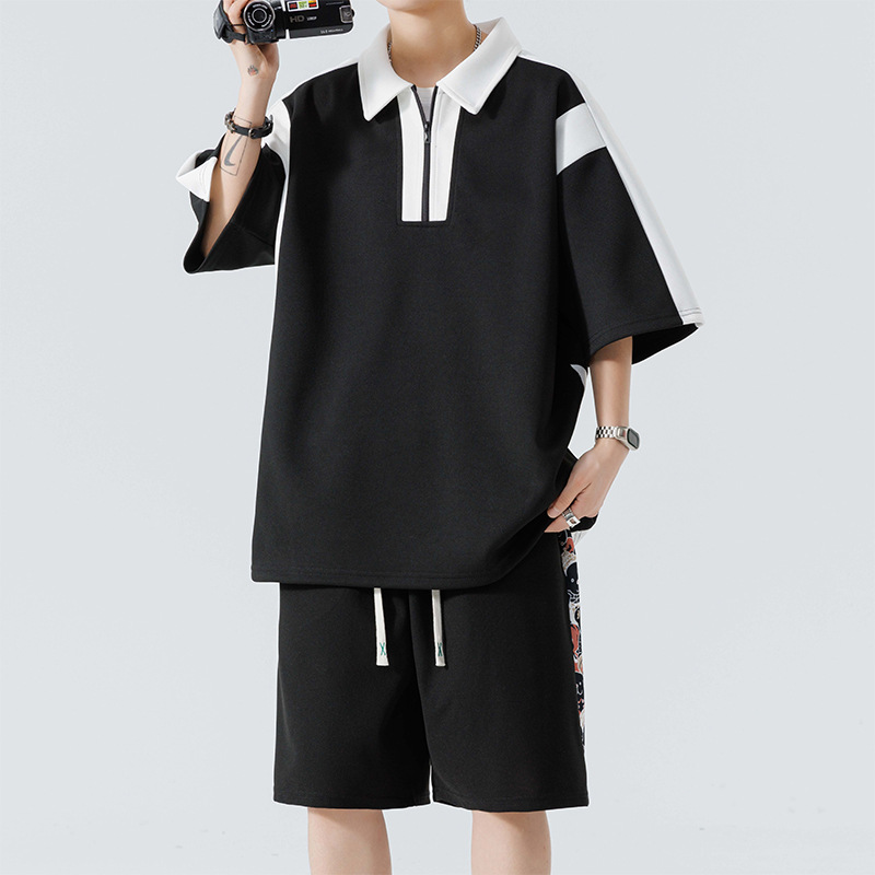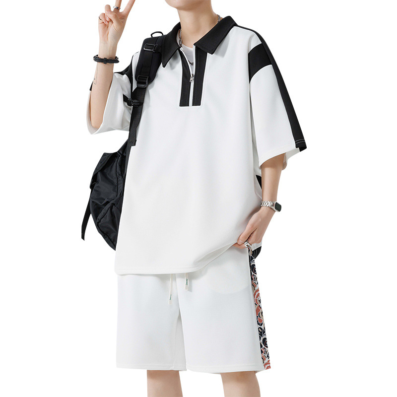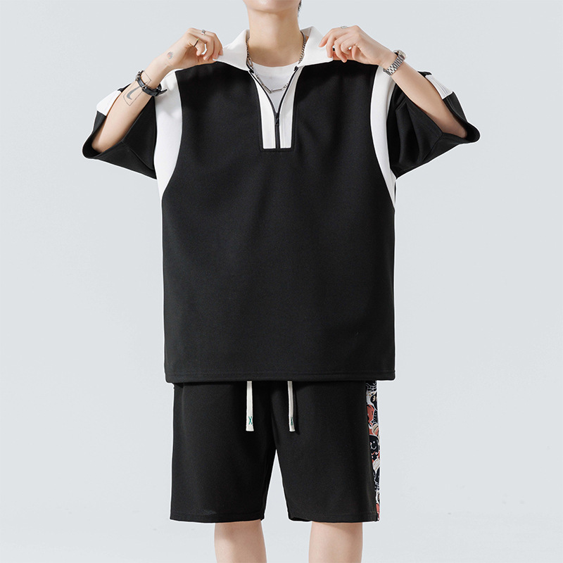 优质夏季新款港风套装两件套短裤休闲运动宽松休闲短裤美式套装男
