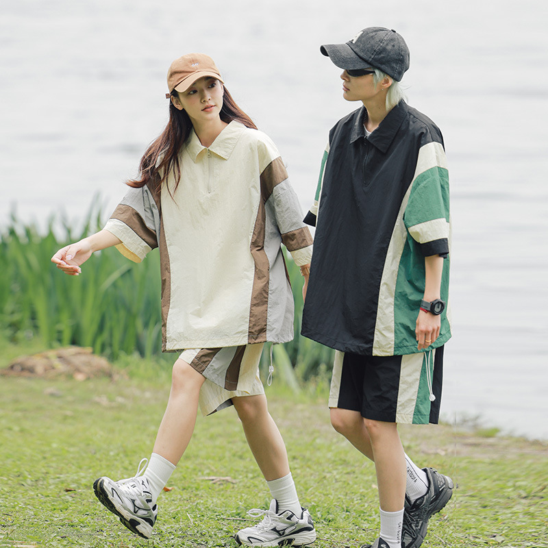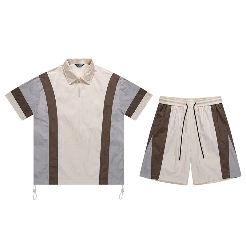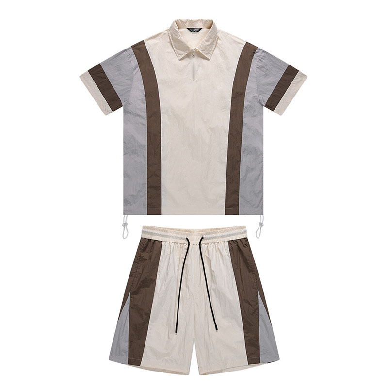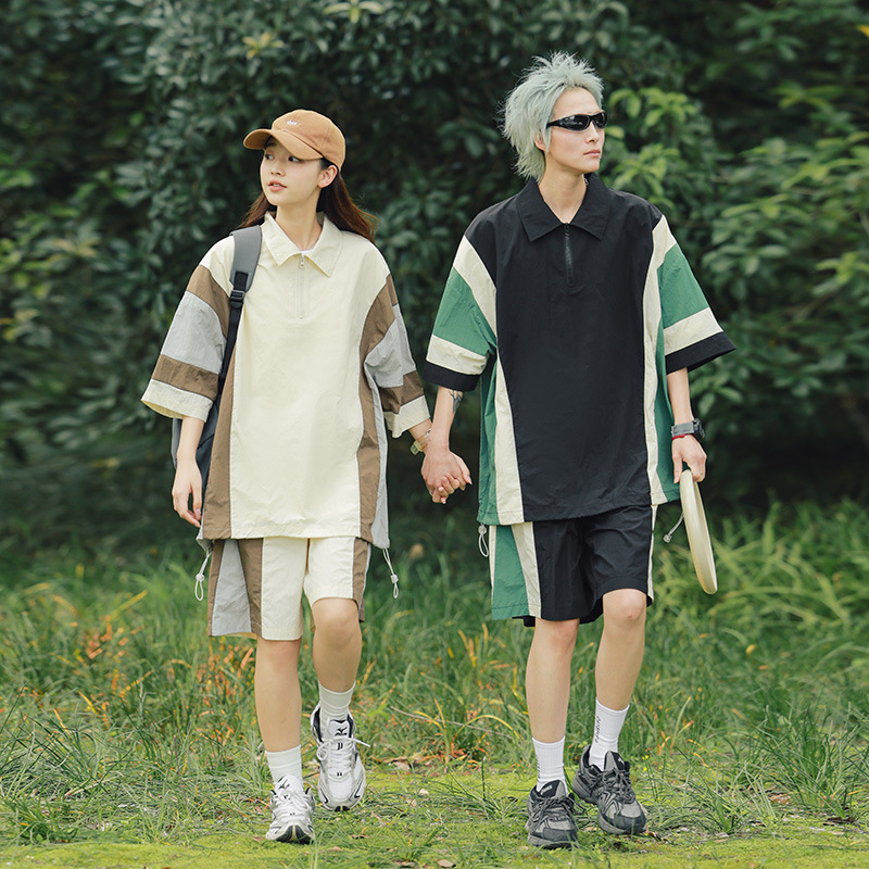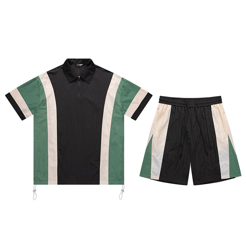 优质套装男士夏季新款户外拼接polo衫短袖短裤休闲运动两件套