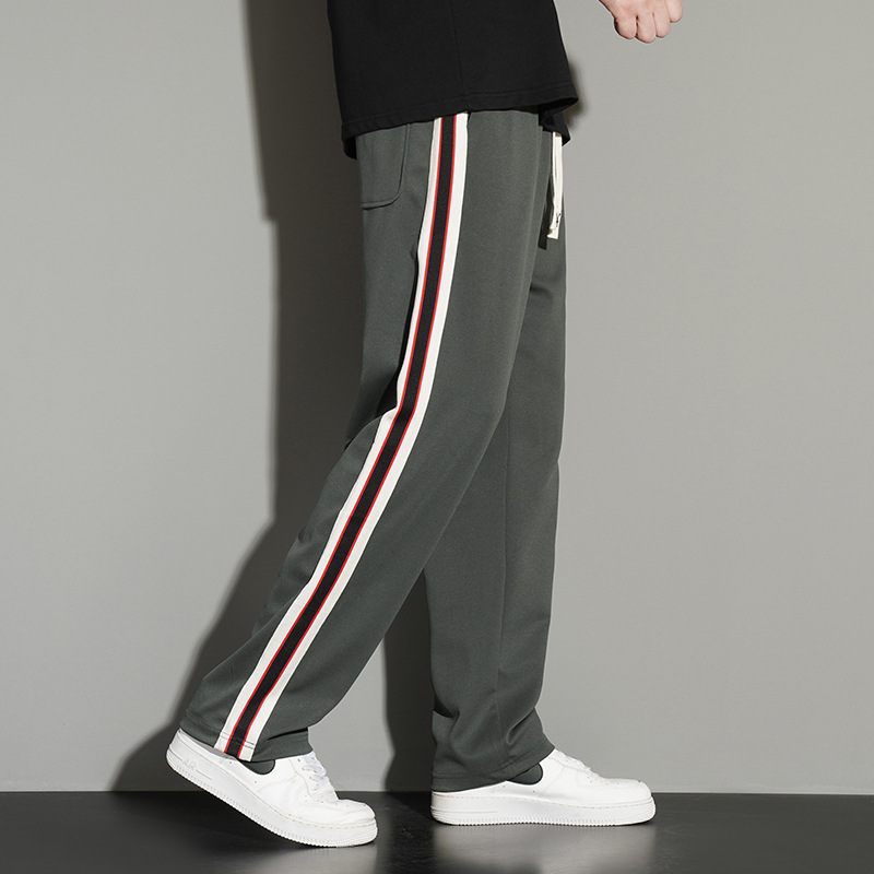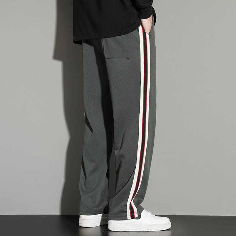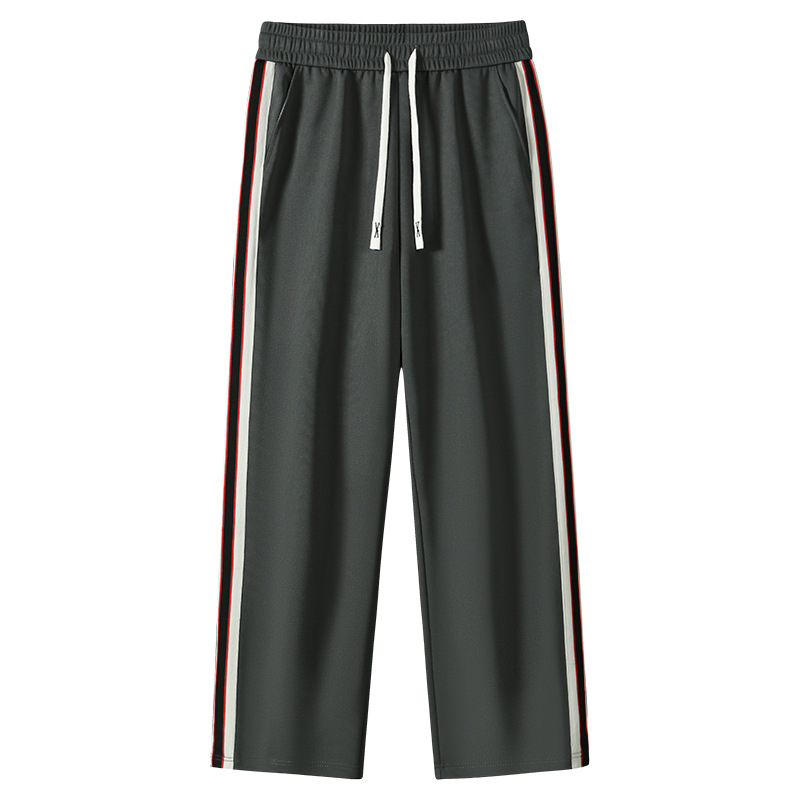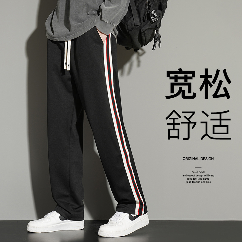 优质春秋季男士休闲直筒长裤港风百搭织带宽脚阔腿拖地长裤卫裤