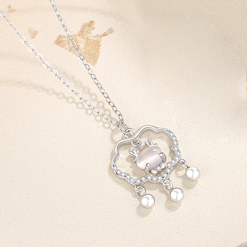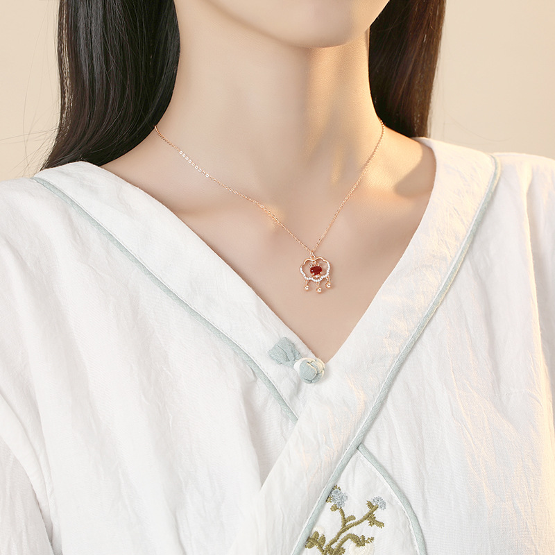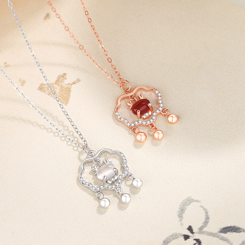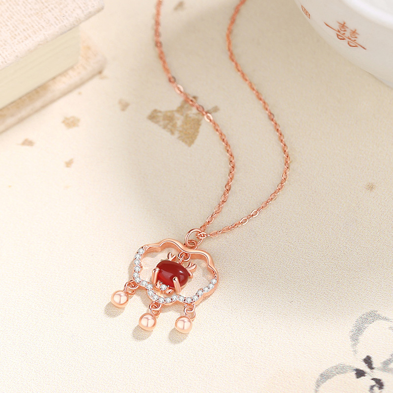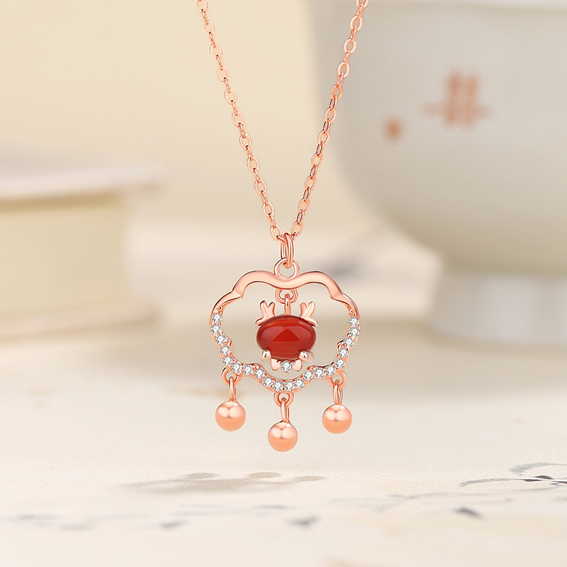 原创萌龙平安锁项链女纯银国潮新中式本命年龙年锁骨链长命锁铃铛