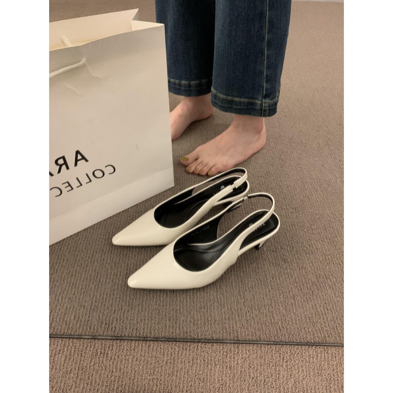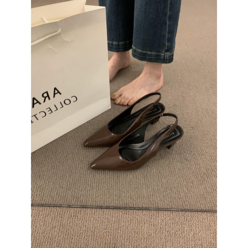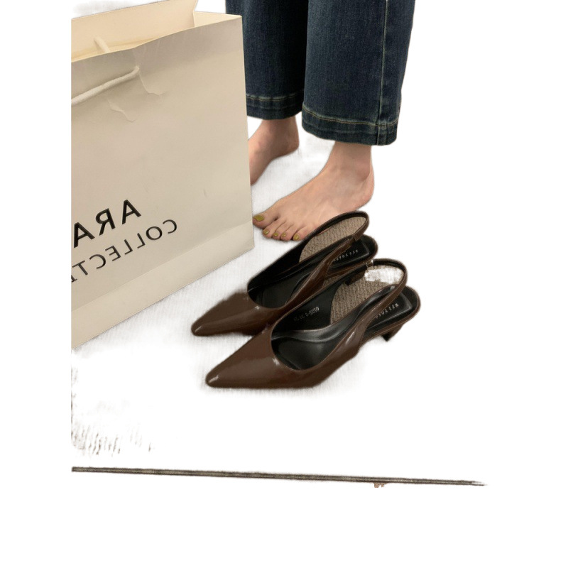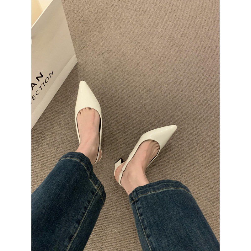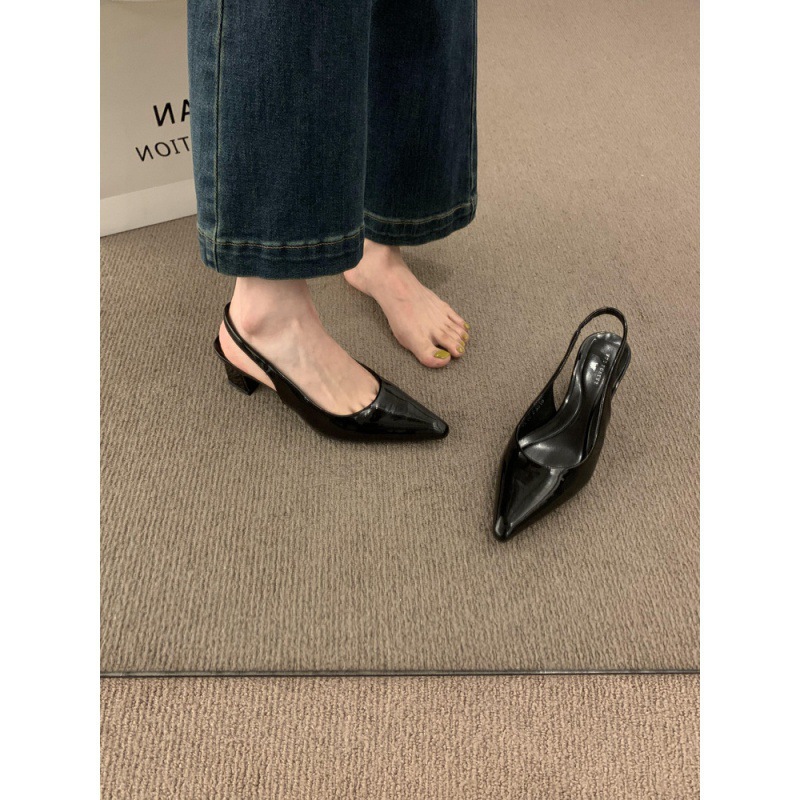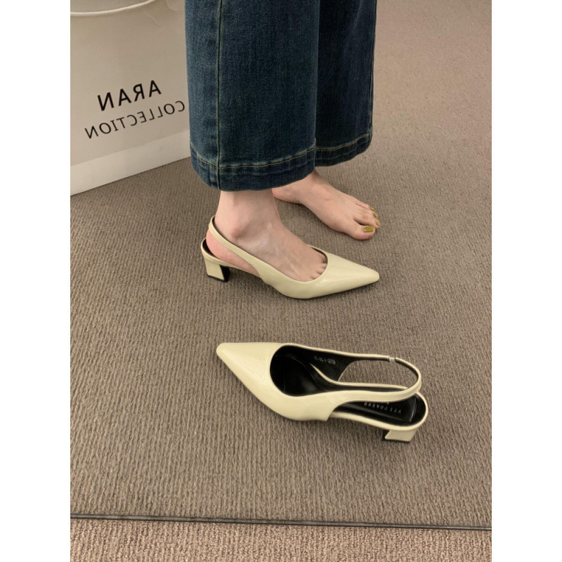 复古尖头配裙子仙女风温柔晚晚鞋粗跟包头凉鞋女后空高跟鞋单跨境