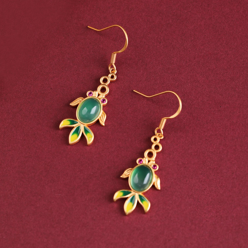 汉服宫廷中式耳坠中国复古风和田耳环宋代阳绿耳钉旗袍流苏耳
