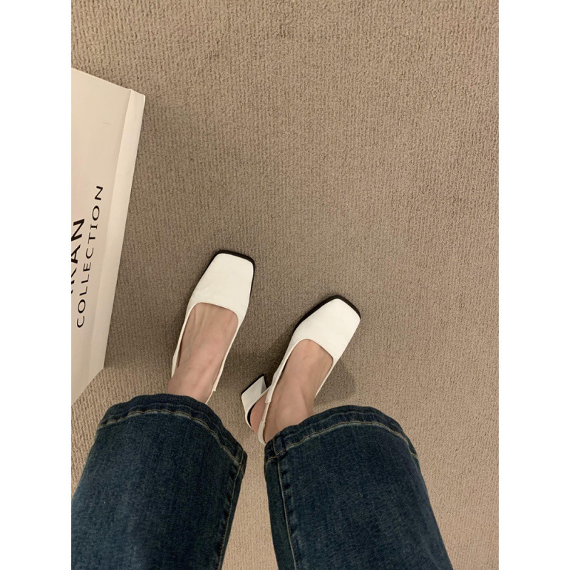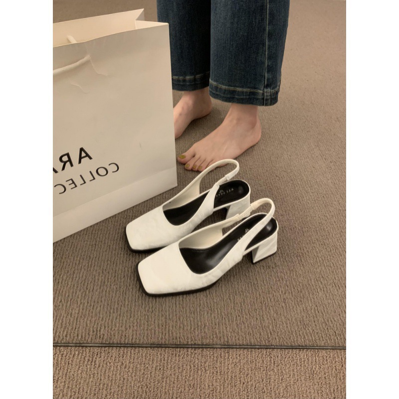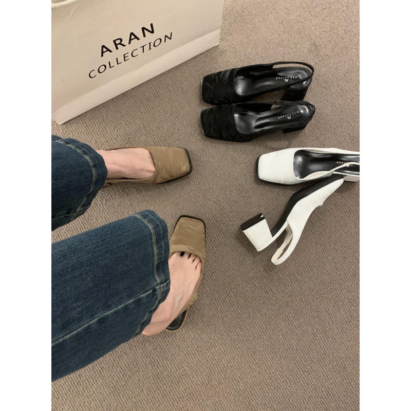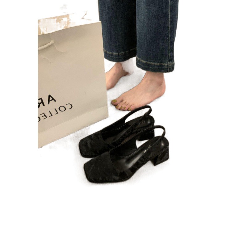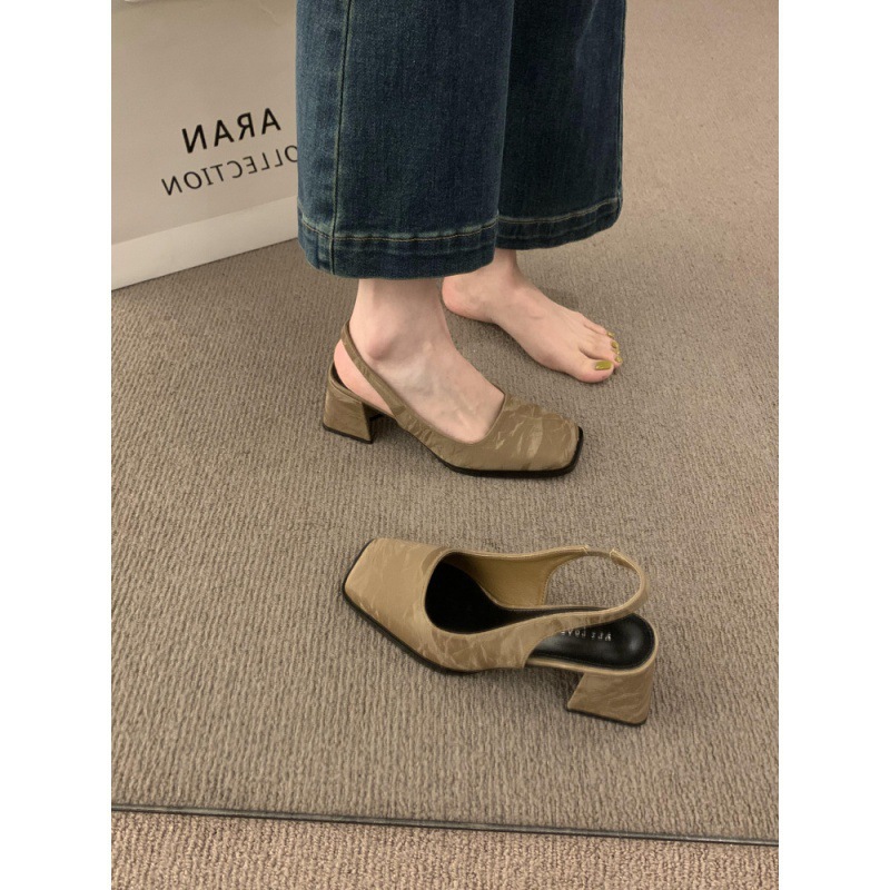 小众设计感粗跟包头凉鞋女鞋子年新款春季通勤高跟鞋后空跨境