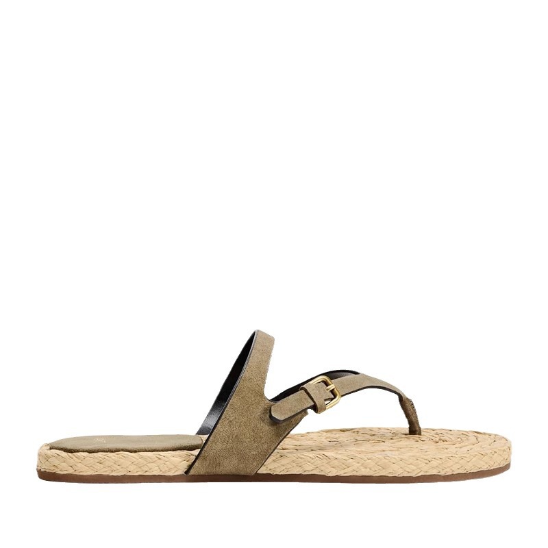 夹趾人字拖ZA夏季新款编织麻绳平底百搭休闲外穿沙滩凉拖鞋女