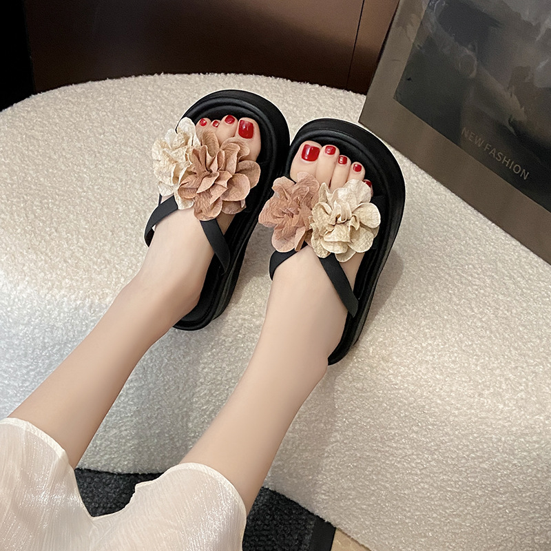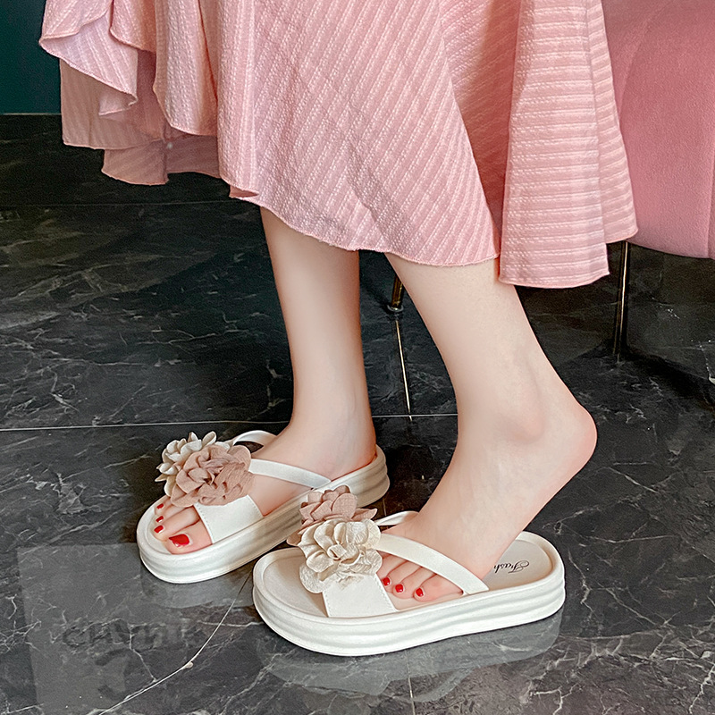 双色花厚底拖鞋女外穿新款夏季百搭女士平底防滑学生时装沙滩凉拖