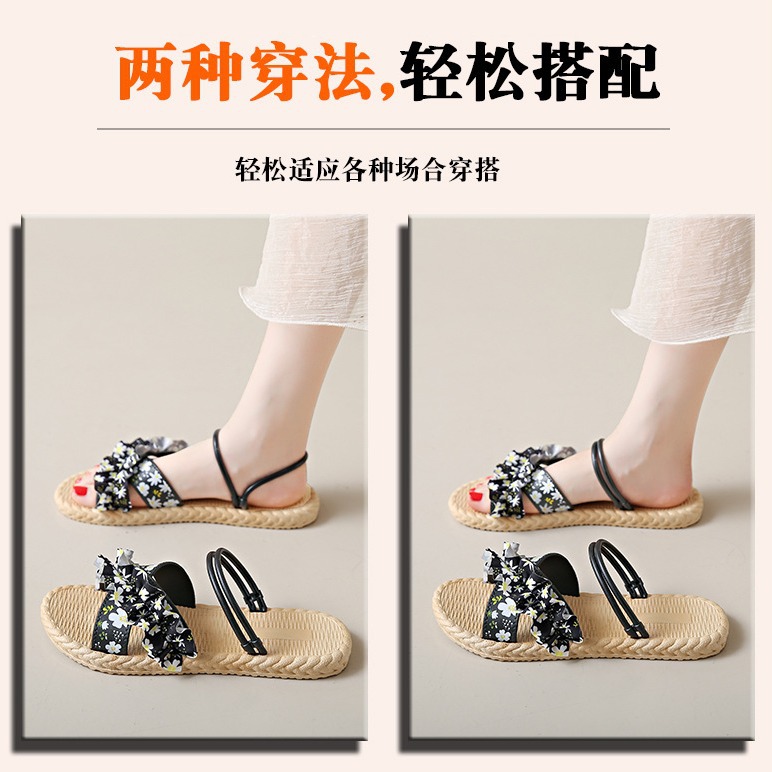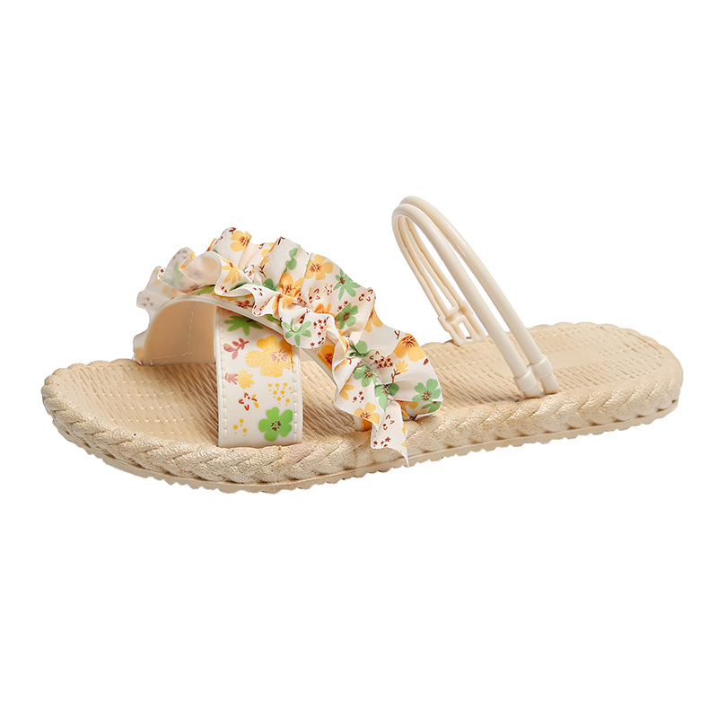 新款碎花拖鞋女夏季外穿百搭女士平底防滑女学生时装凉鞋沙滩鞋子