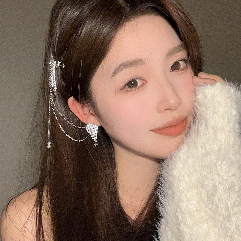 气质轻奢闪钻流苏发夹耳环一体式新款冷淡风个性甜酷耳饰女