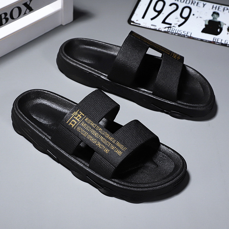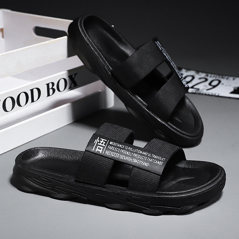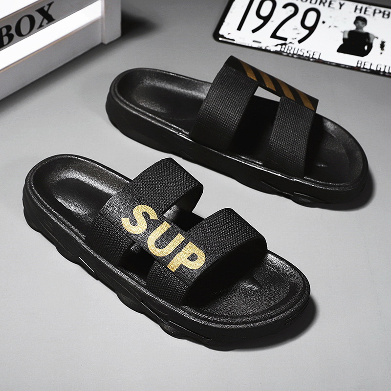 新款拖鞋男外穿夏潮流时尚百搭厚底家用运动沙滩一字男式凉拖鞋男