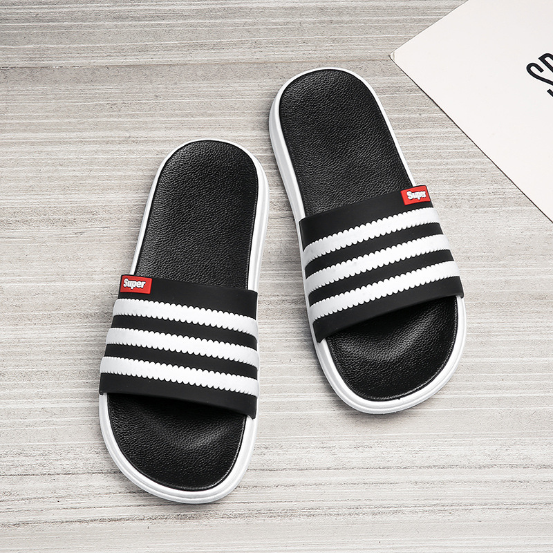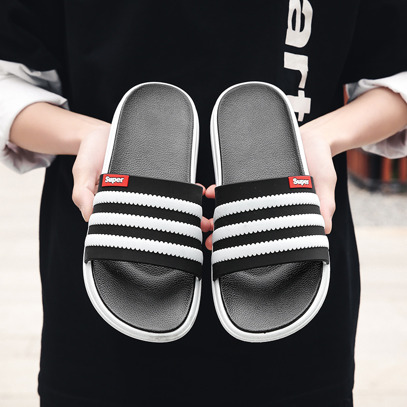 款潮流韩版条纹拖鞋男士夏季室外穿一字拖鞋防滑耐磨简约个性男鞋