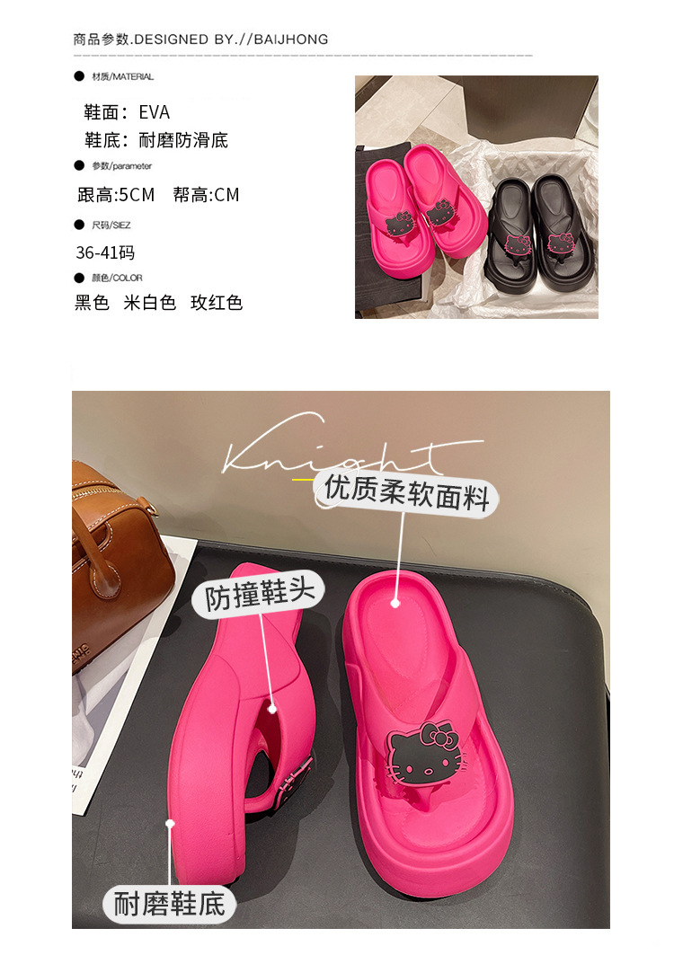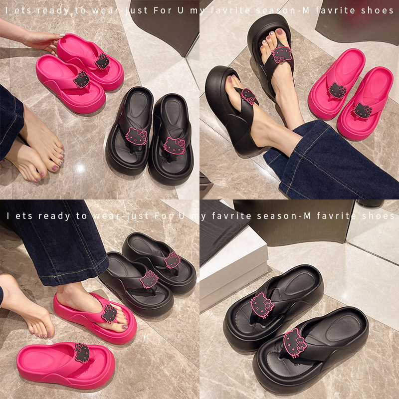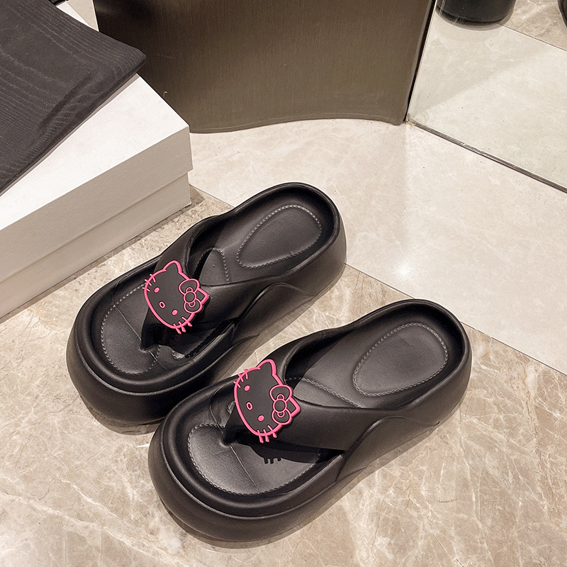 网红可爱卡通增高厚底人字拖鞋女夏外穿新款黑色软底防滑凉拖