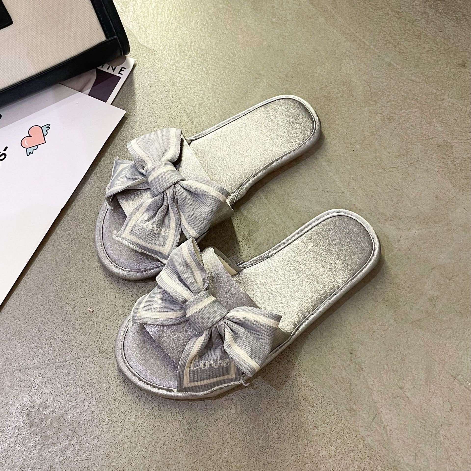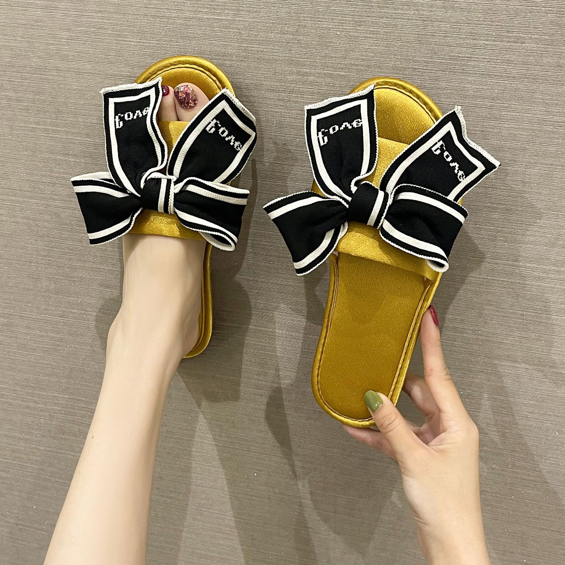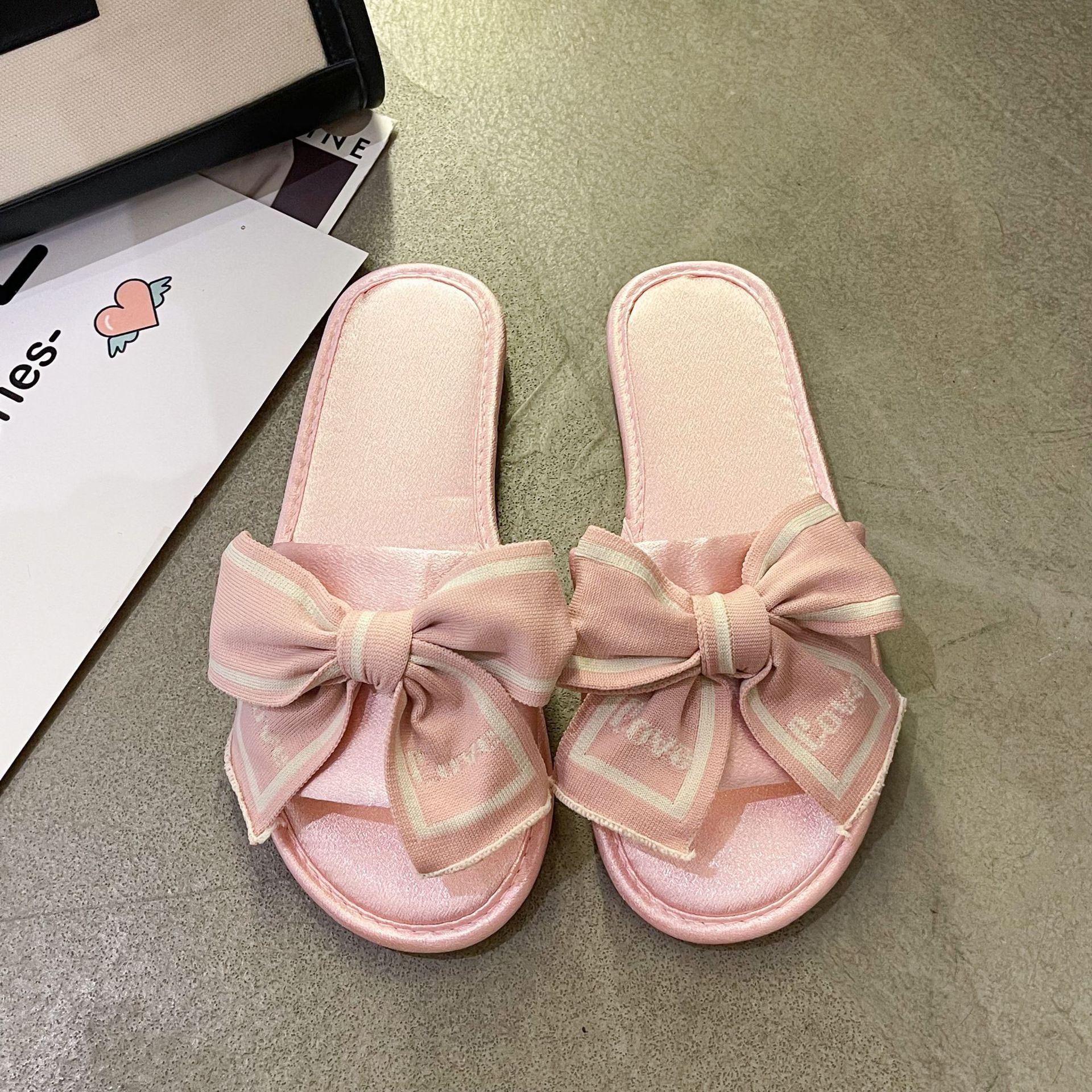 新款小香风蝴蝶结绸缎拖鞋 软底家居鞋透气轻便凉拖鞋女