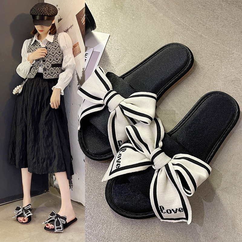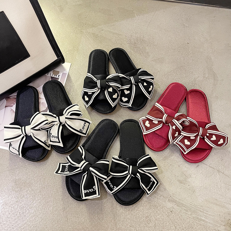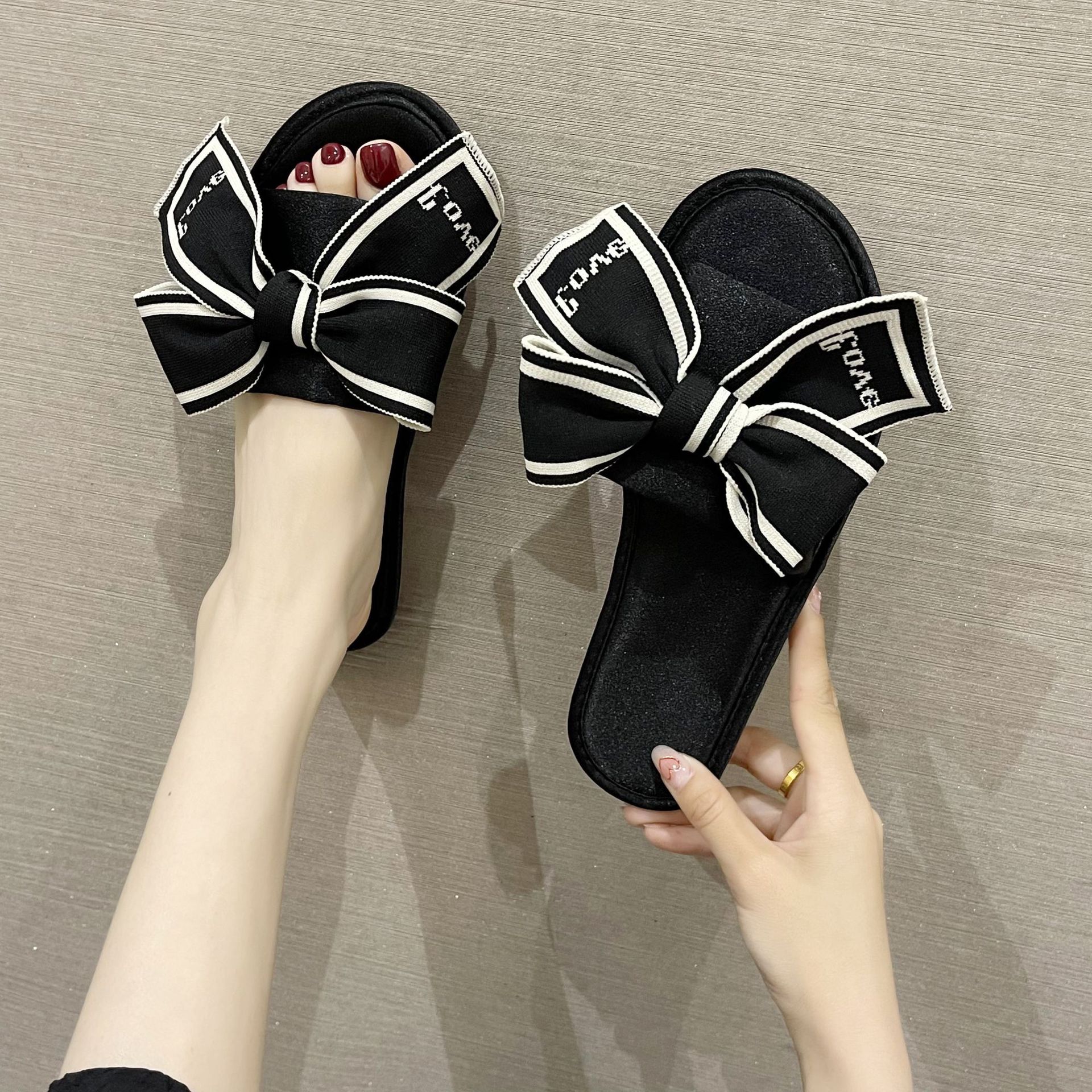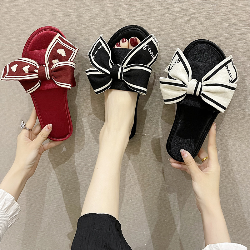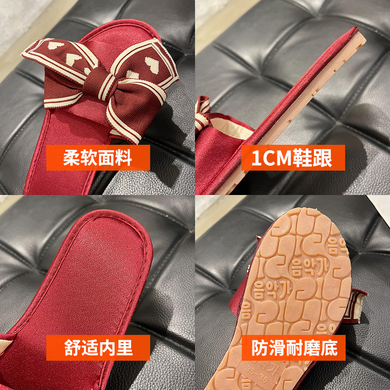 新款小香风蝴蝶结绸缎拖鞋 软底家居鞋透气轻便凉拖鞋女