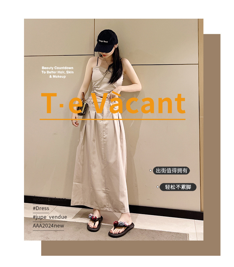 印花吊带露背蝴蝶结连衣裙百搭大裙摆长款裙子