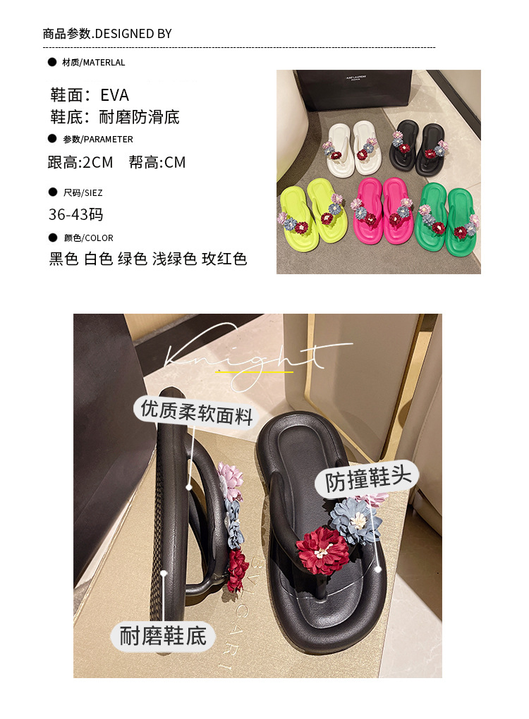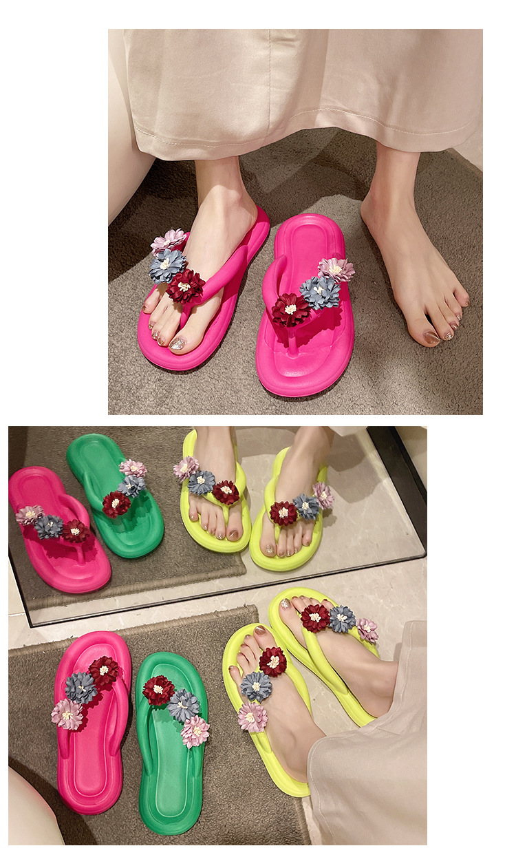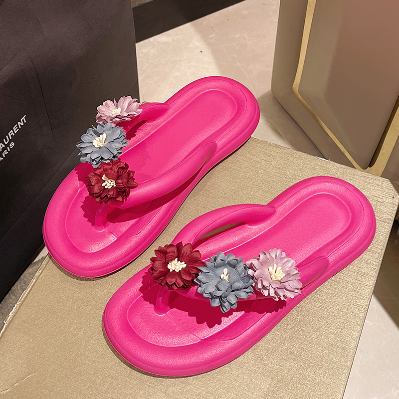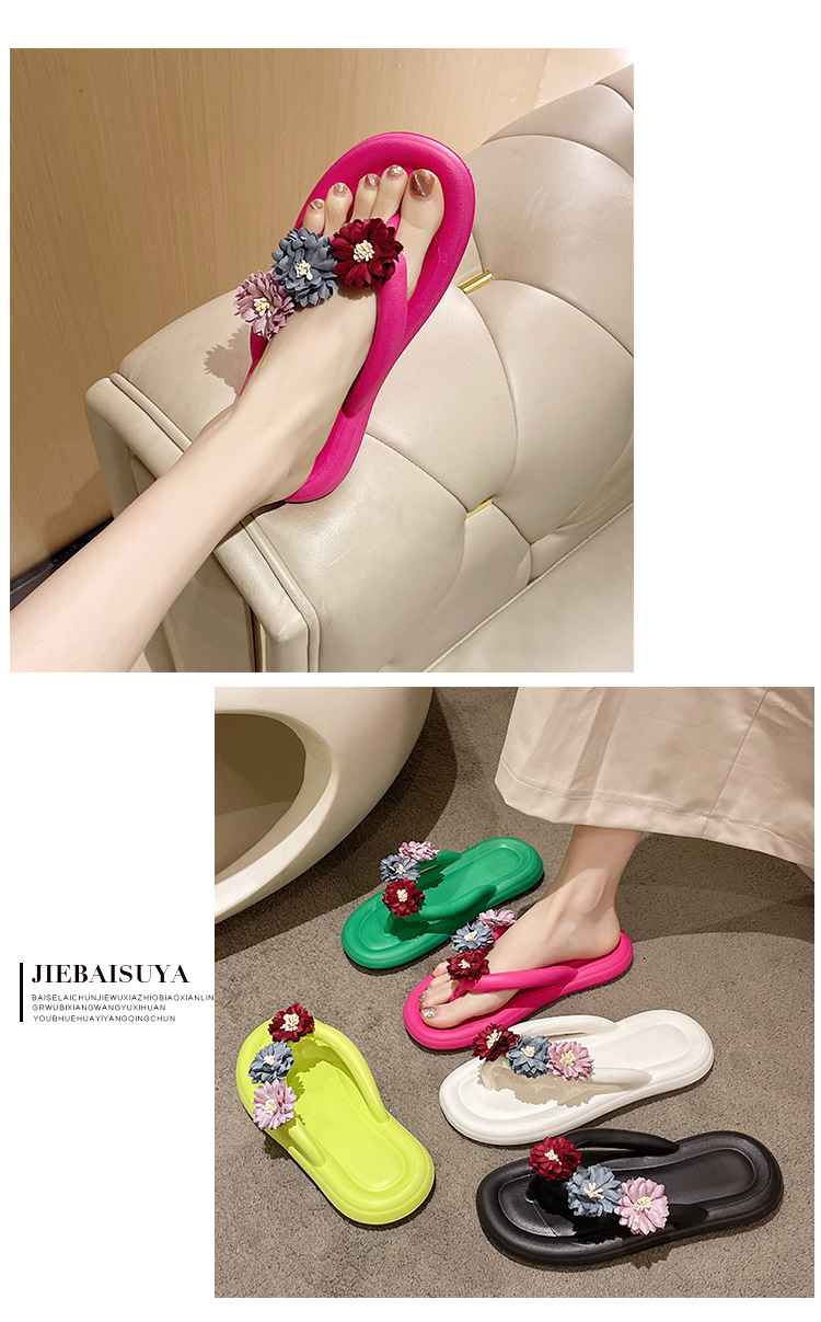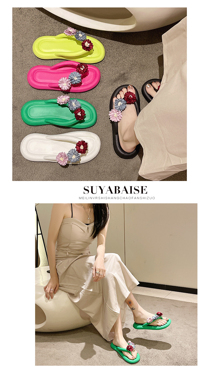 海边沙滩凉拖鞋女春夏季新款外穿糖果色花朵可爱可湿水凉拖鞋