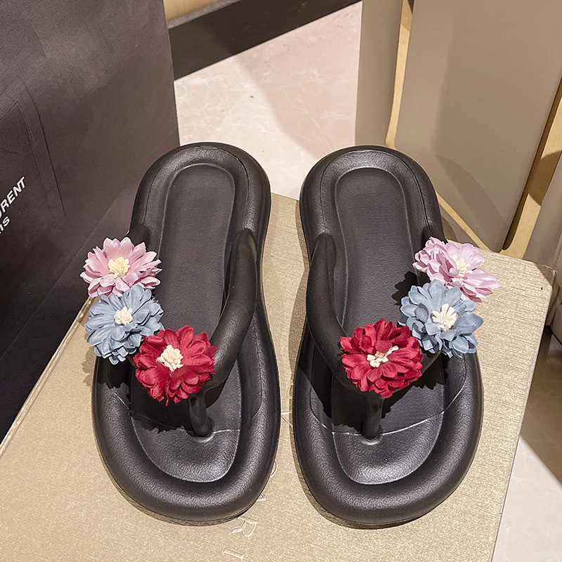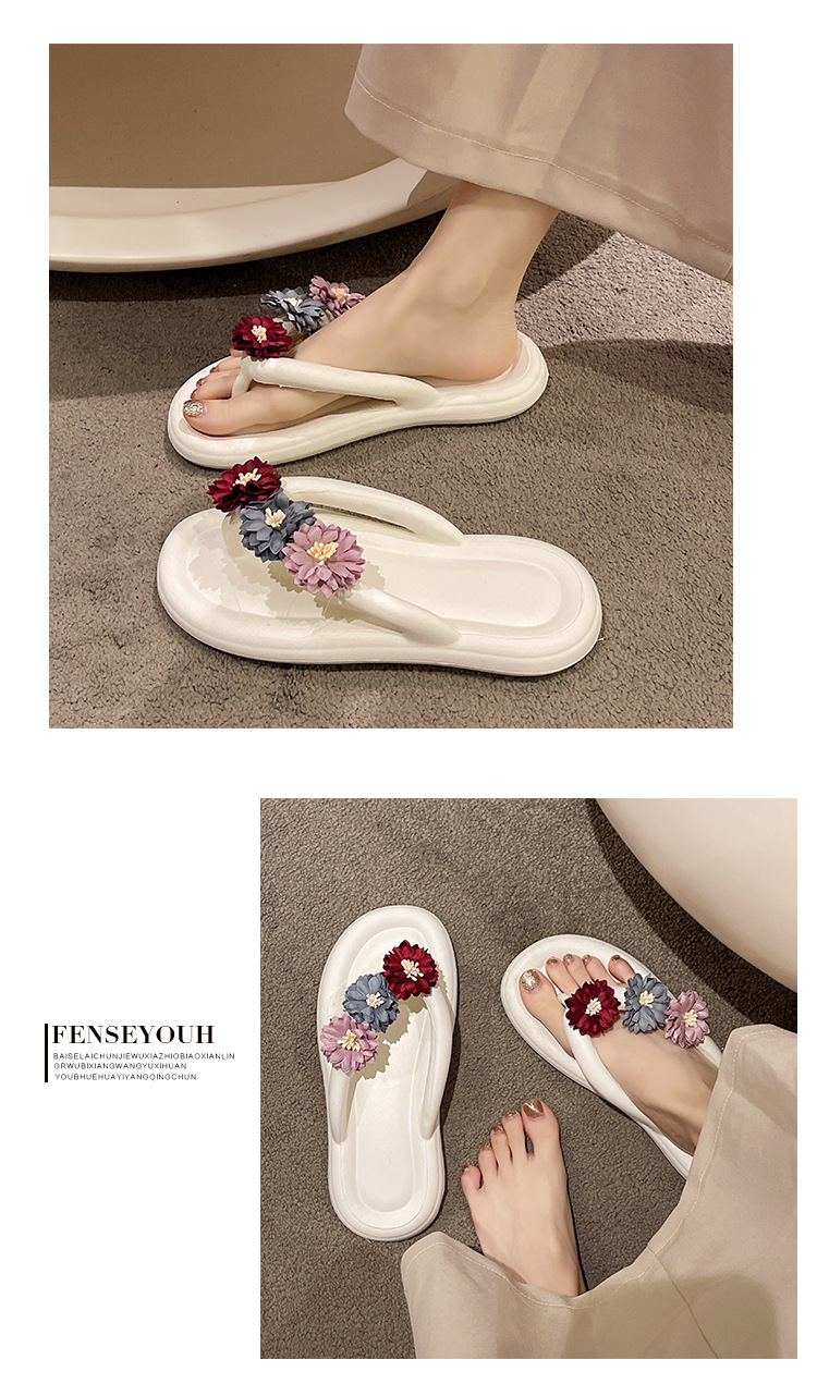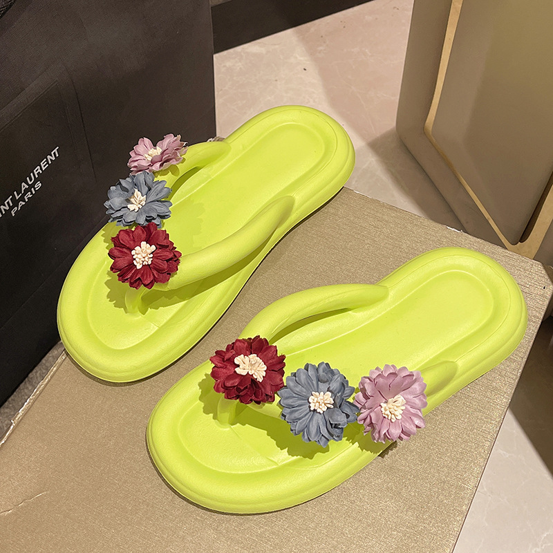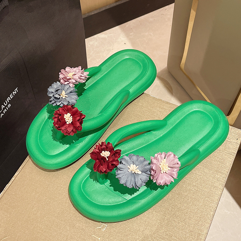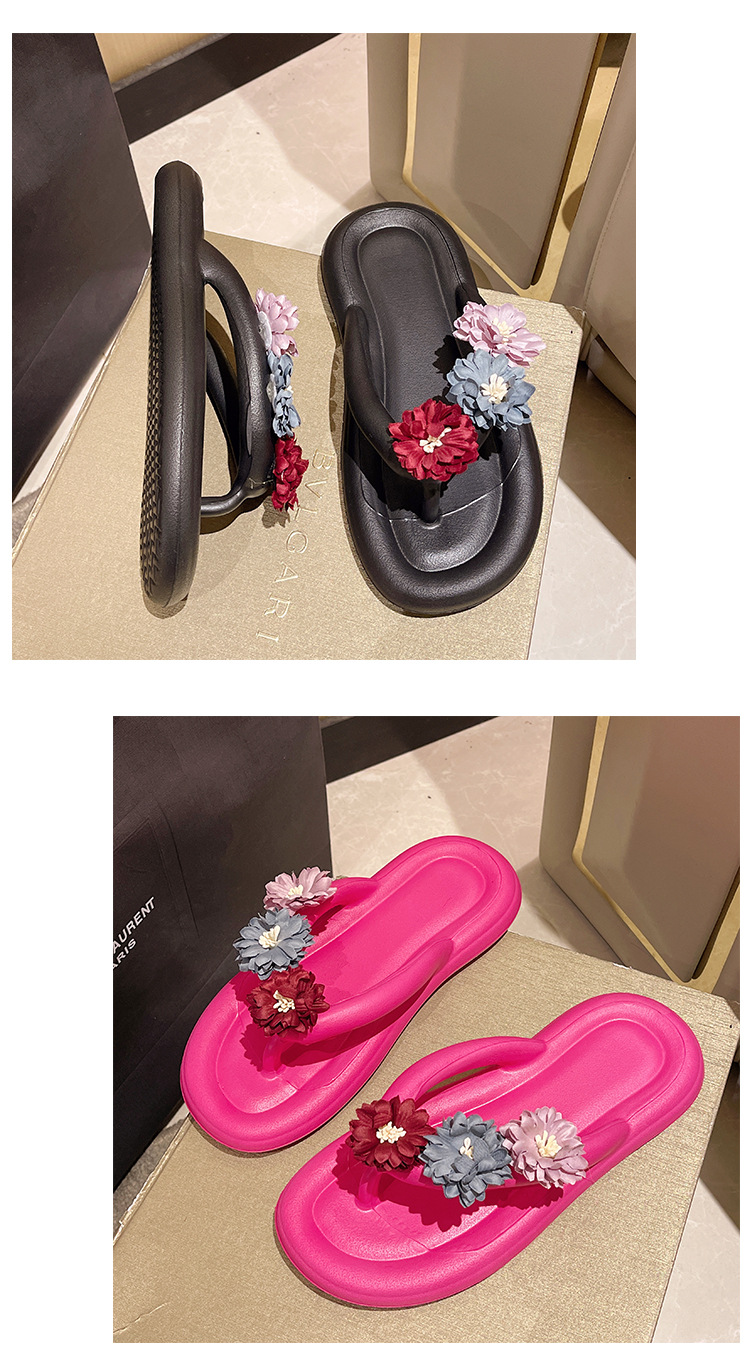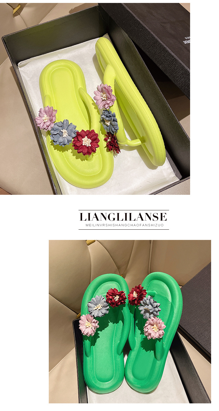海边沙滩凉拖鞋女春夏季新款外穿糖果色花朵可爱可湿水凉拖鞋