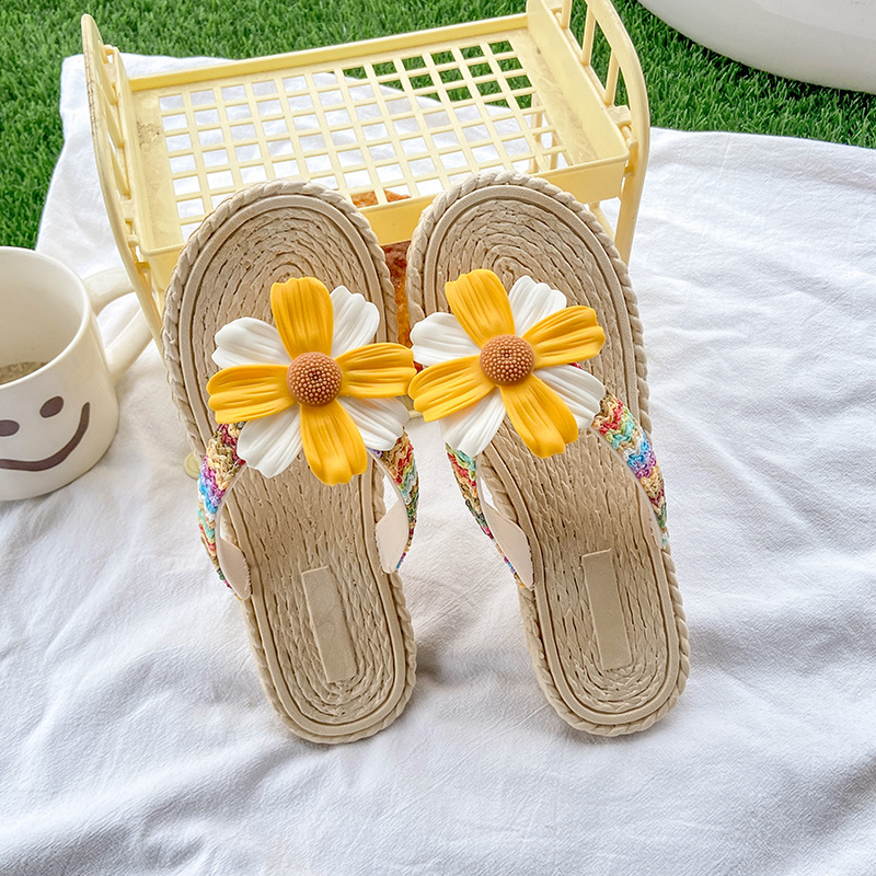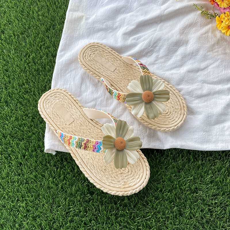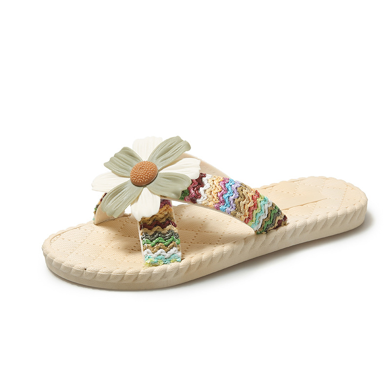 凉拖鞋女夏季外穿小清新花朵凉拖鞋新款时尚仙女风百搭软底沙滩鞋