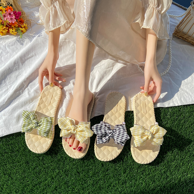 秋季新款韩版平底拖鞋外穿包头蝴蝶结懒人鞋方头女鞋