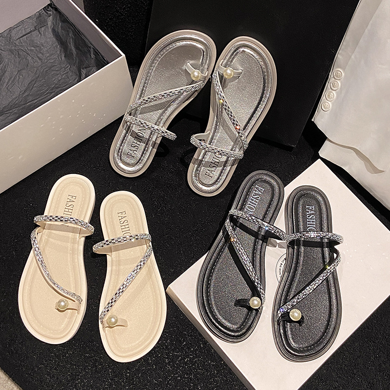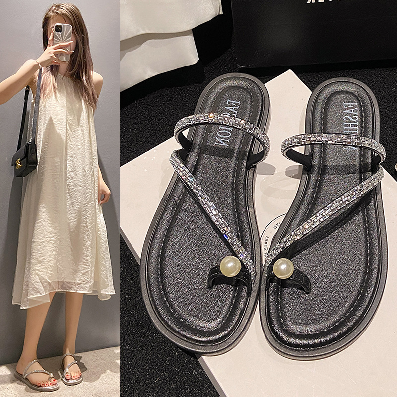 夏季新款休闲度假法式平底凉鞋绝美仙女风凉拖鞋女外穿时尚水钻