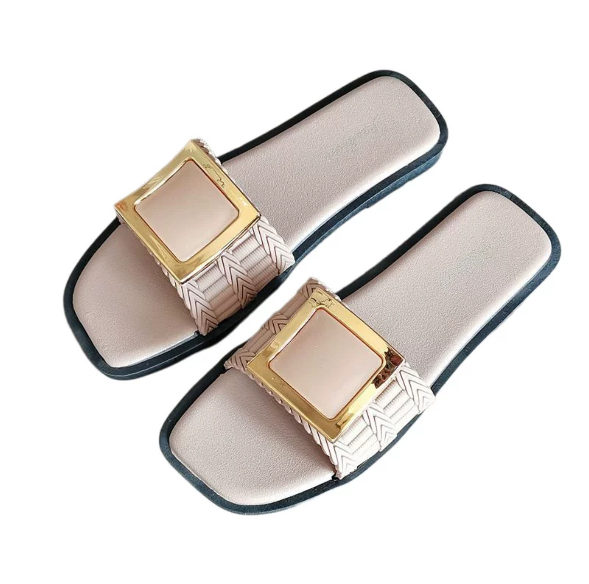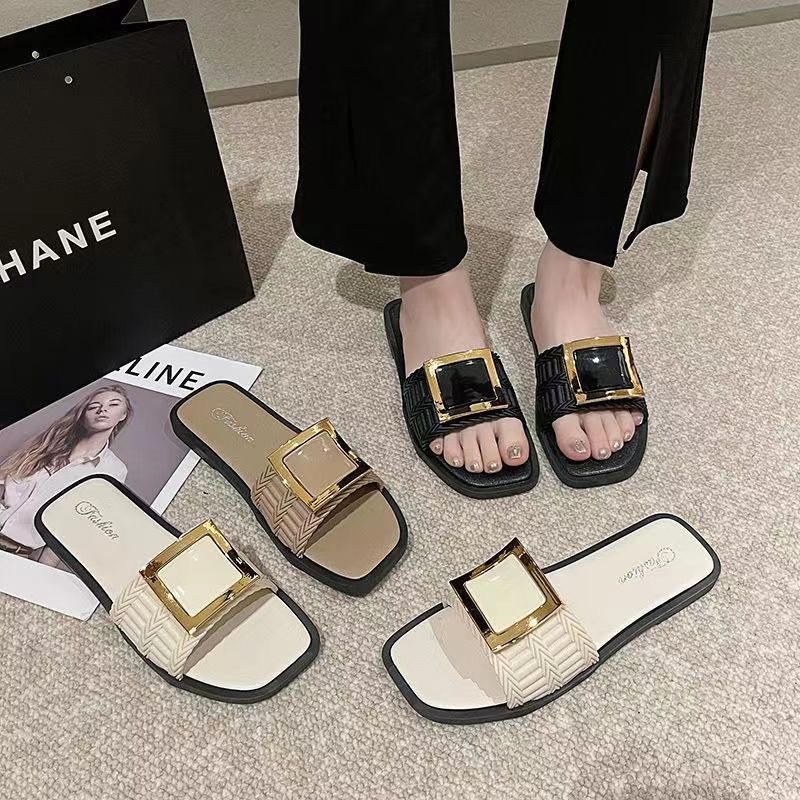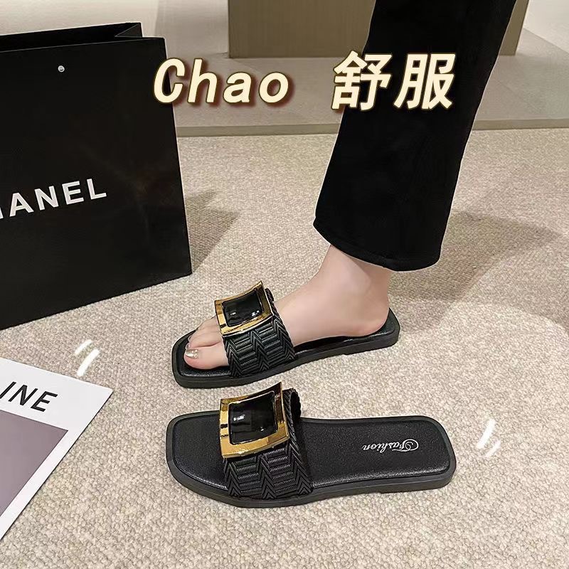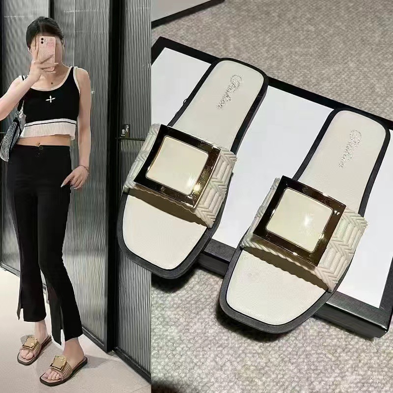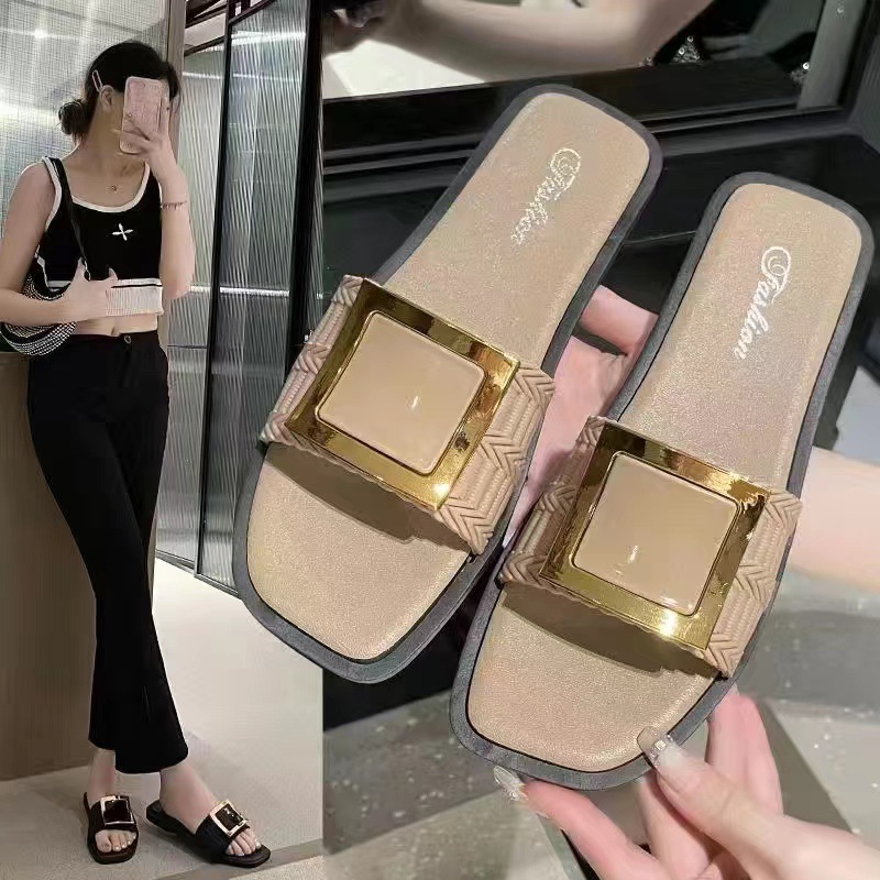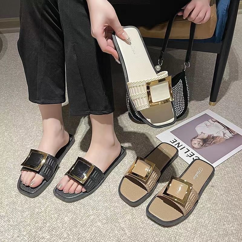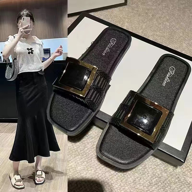 新款平底时尚方扣凉拖鞋夏季外穿软底室内居家防滑防臭凉拖鞋