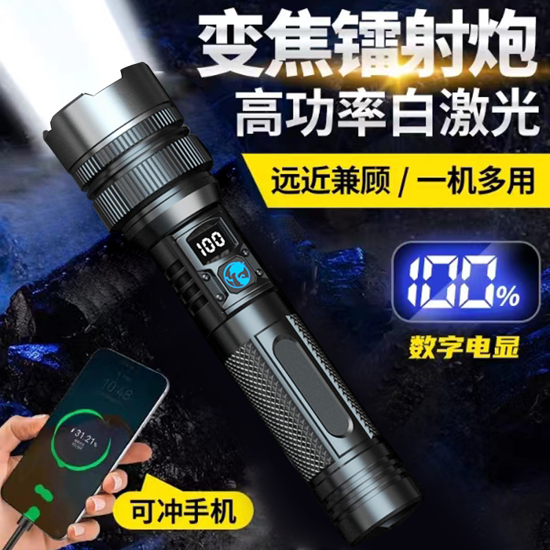 手电筒充电长续航白激光强光镭射炮变焦户外远射手电家用