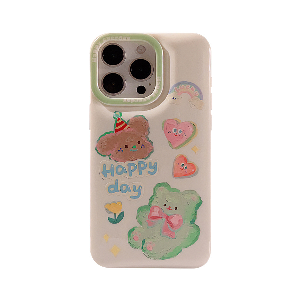 薄荷绿小熊适用苹果16手机壳13promax油画卡通iphone15硅胶14