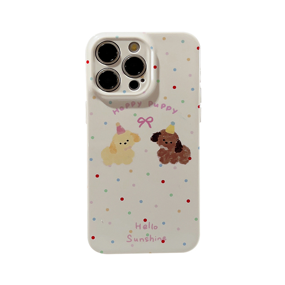糖果色波点狗狗iPhone15苹果手机壳14ProMax菲林16适用12全包13软