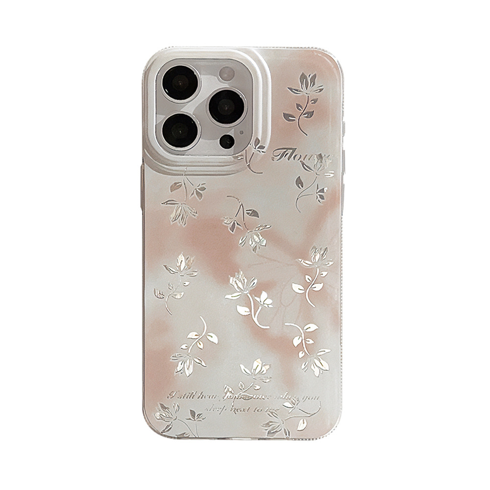 温柔高级羽纱粉色蝴蝶花朵适用14苹果15promax手机壳iphone13硬16