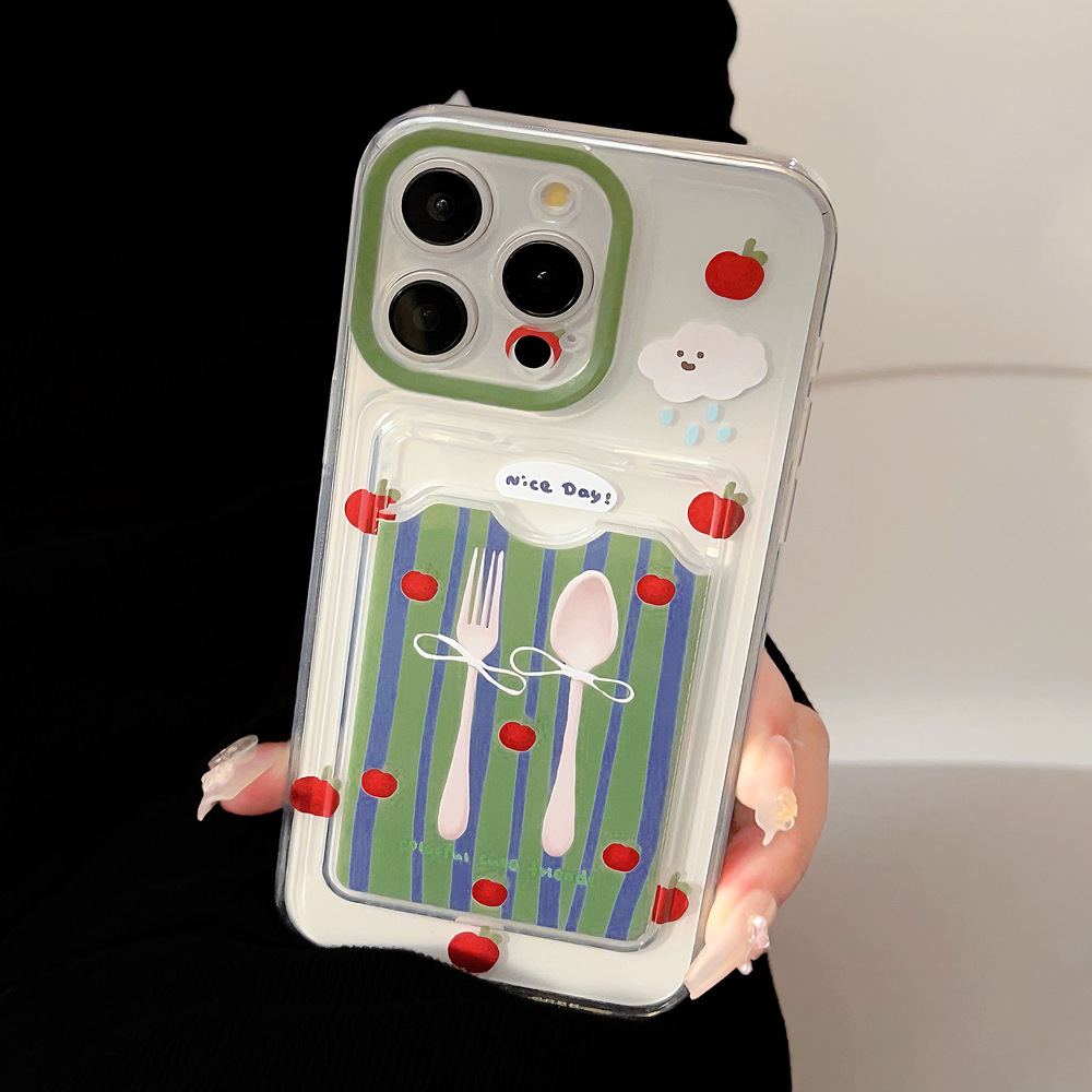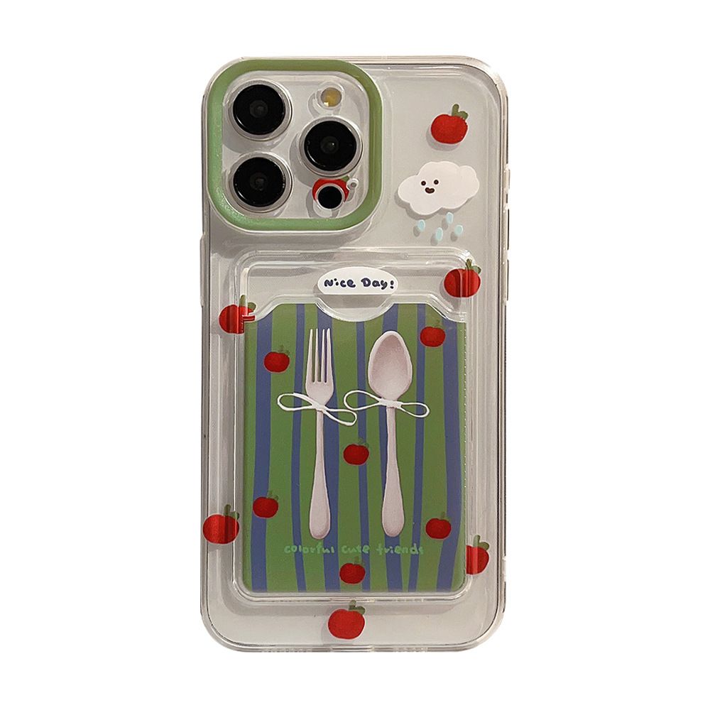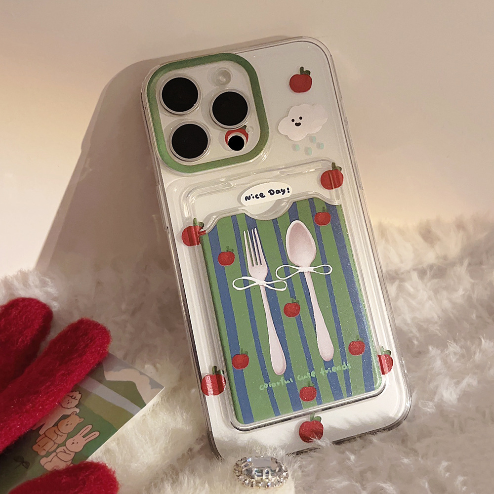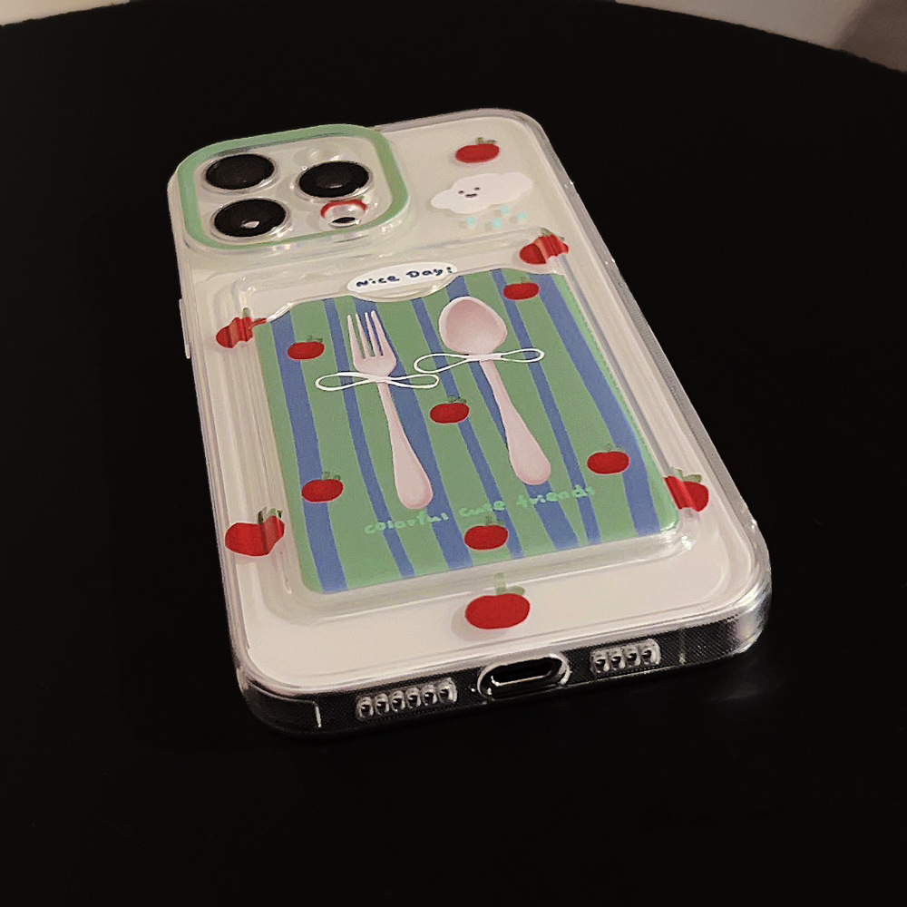 可爱苹果刀叉格纹卡包适用iphone14promax手机壳13苹果15透明16软