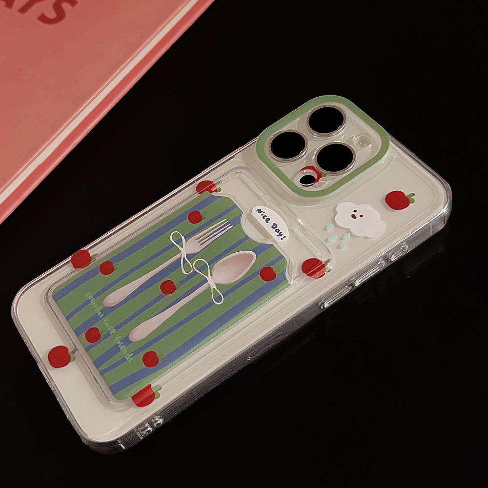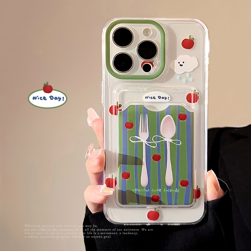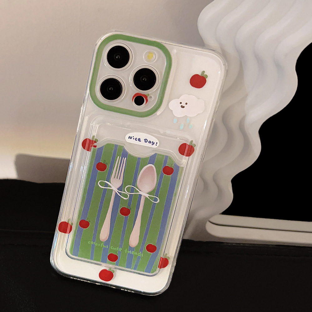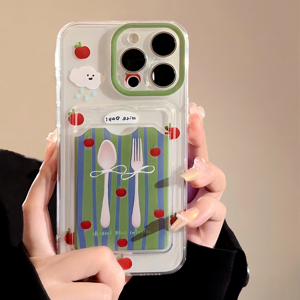 可爱苹果刀叉格纹卡包适用iphone14promax手机壳13苹果15透明16软
