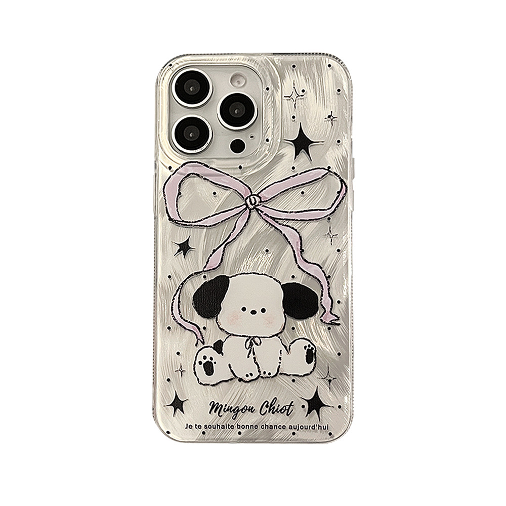 蝴蝶结小狗手机壳适用14苹果15promax羽纱可爱iphone13防摔16原创